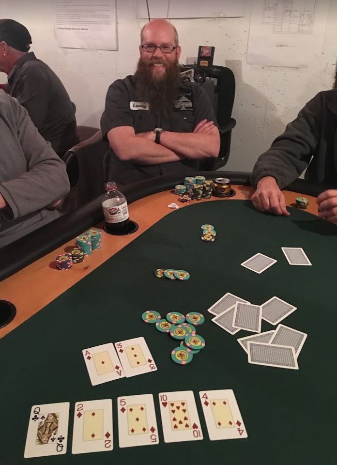 $700+ pot :ah::as: resucks out on the turn vs two flopped flushes. All the money got in on the flop. Dealer scooped the cards before I could snap a pic.