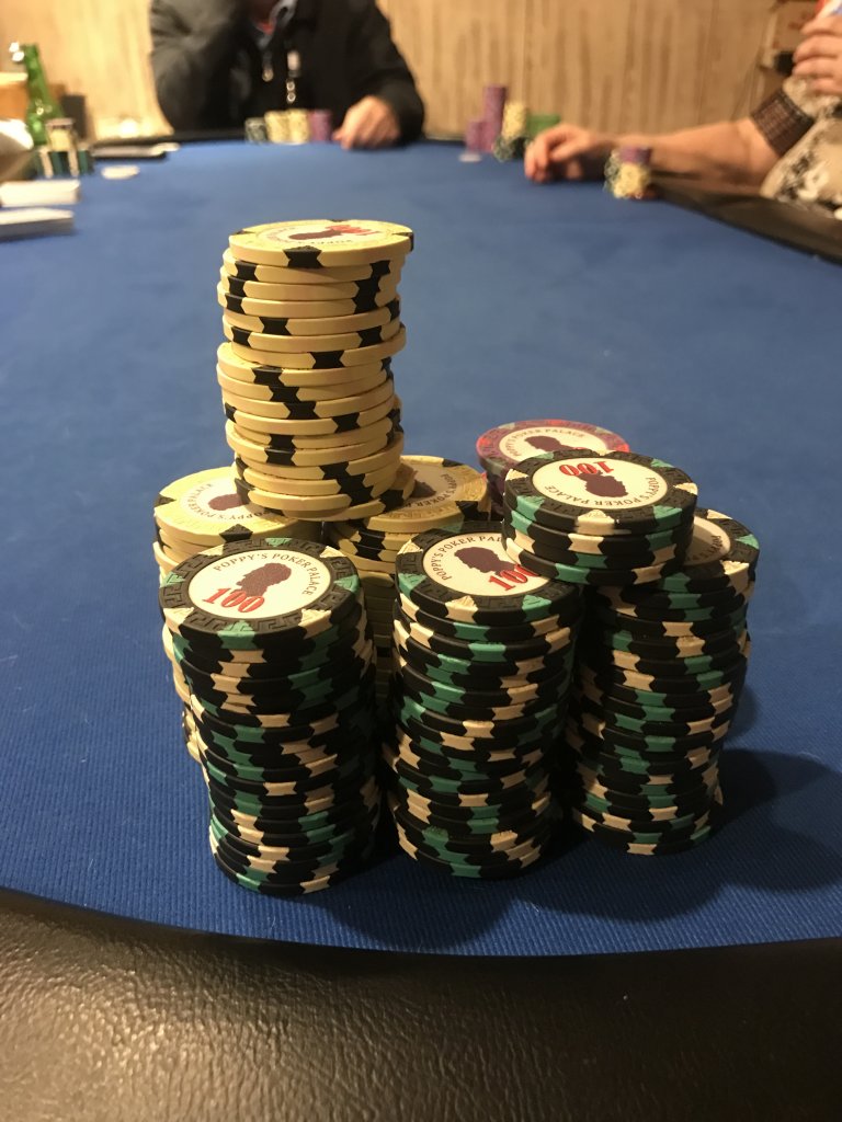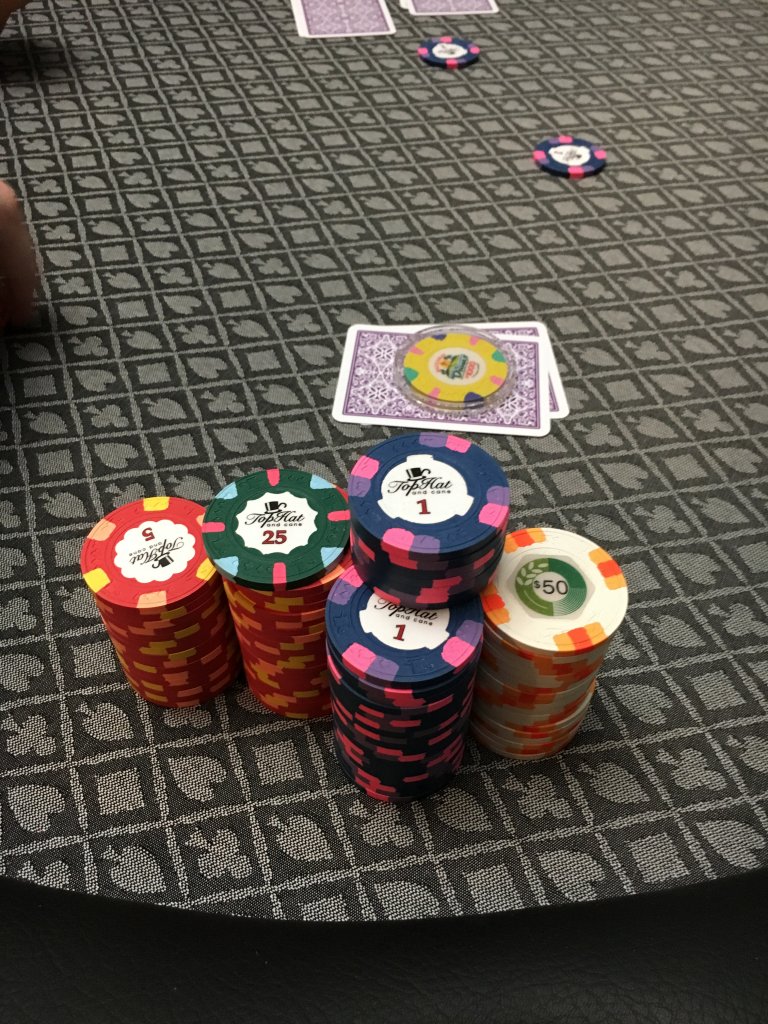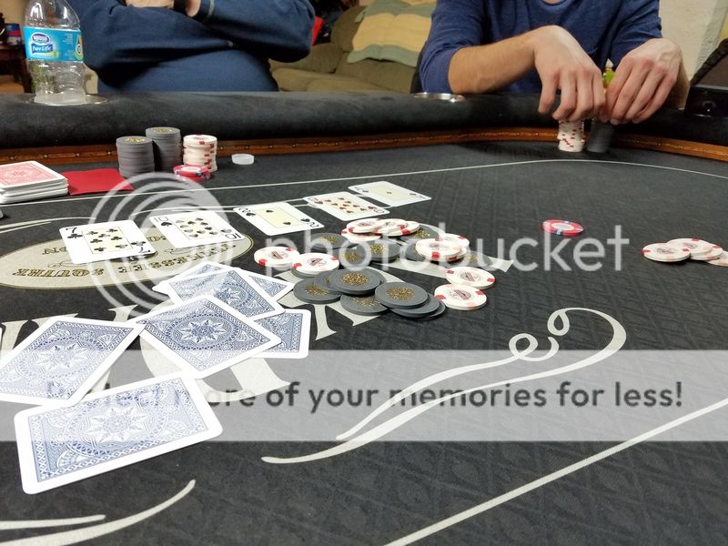 Had a great time on Friday at @Kyle's place with @pokerplayingpisces and @One Eyed Dollar in the house. I ended up busting out with a crazy hand of a flopped J-high flush, vs. flopped 2-pair, vs. flopped Q-high flush against @One Eyed Dollar. OED's Q-high flush held up... Screw that guy! :p