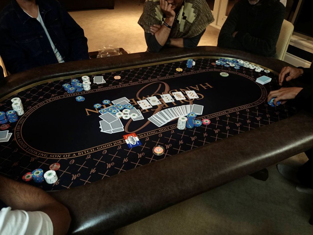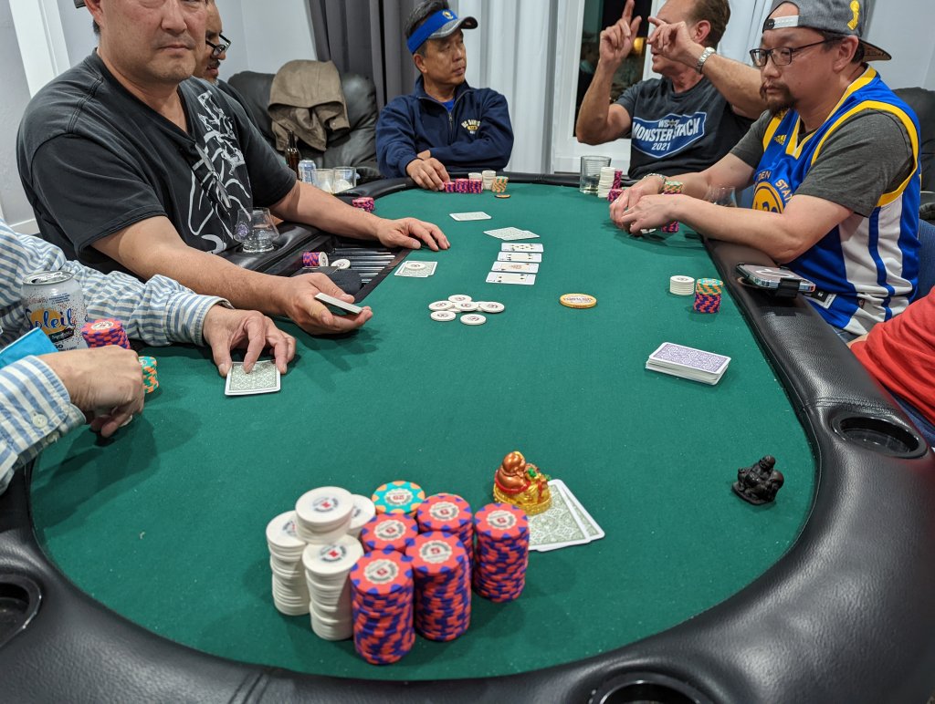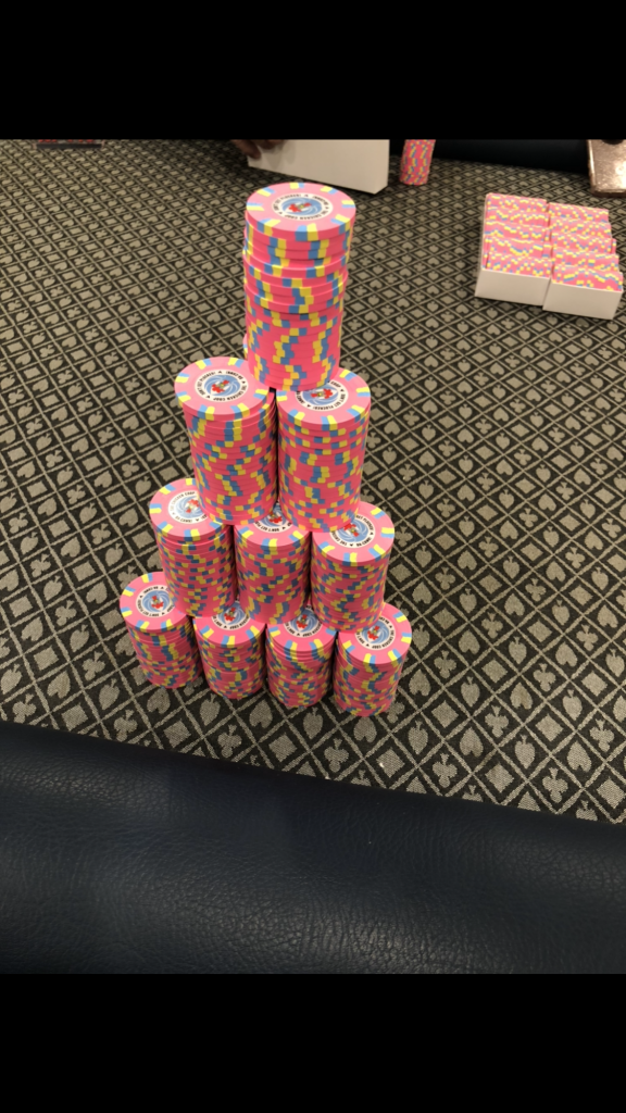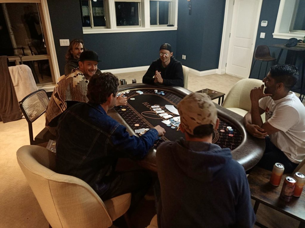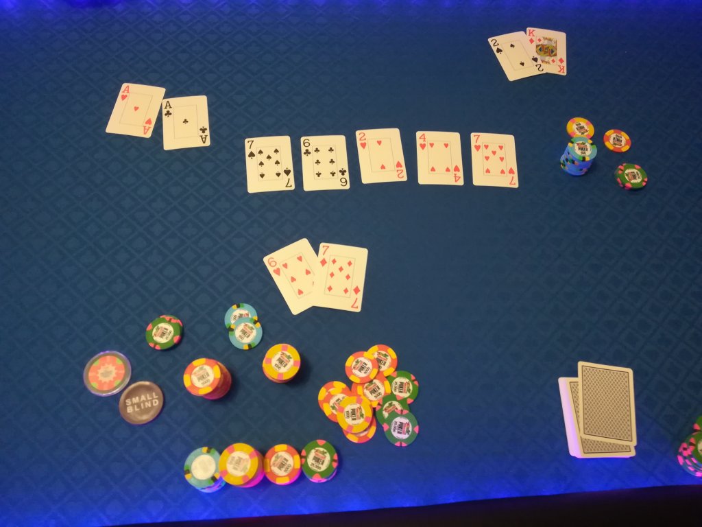 It’s Scarney, it’s the river, Chicken loses his straight flush when he is forced to discard. He ends up with like a 15 high and high King. I scoop with a 12ish high and a pair of 3s.
