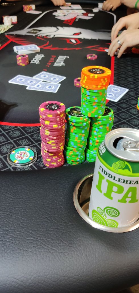 Played last night at my buddy Eric's house - 7 handed. 25/50¢ NLHE/PLO, $1/2 7 stud type games. In for $100, got worked over the first two freaking hands of the night (went all-in & got quartered in Pineapple Omaha8 and then all-in and coolered, PPLO8 again, on an Ace high flush to my King high flush, both times on the river and both times I was ahead after the turn - $%& ME! - I would have taken pics but I was too tilted/traumatized, haha). Bought in for another $100 and only won back $13 by the end of the night so in for $200 and out for $113).