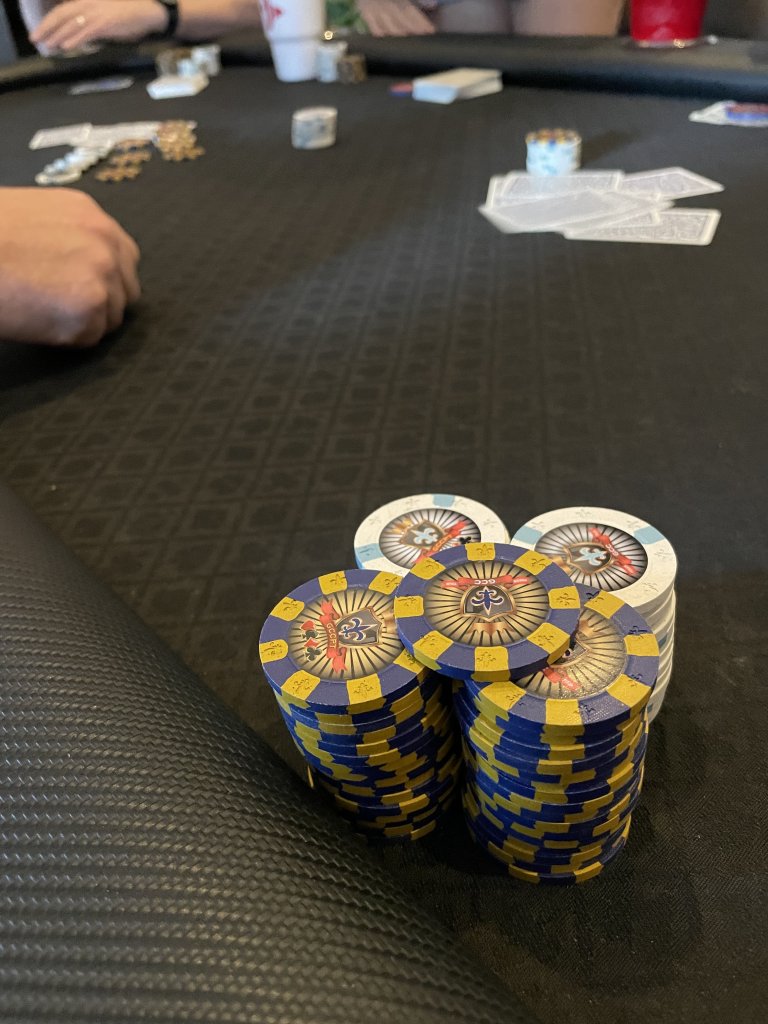 View attachment 924662Not my house. Single table tourney. Reds are 10, green 25, black 100. This would be hell if I wasn’t up.