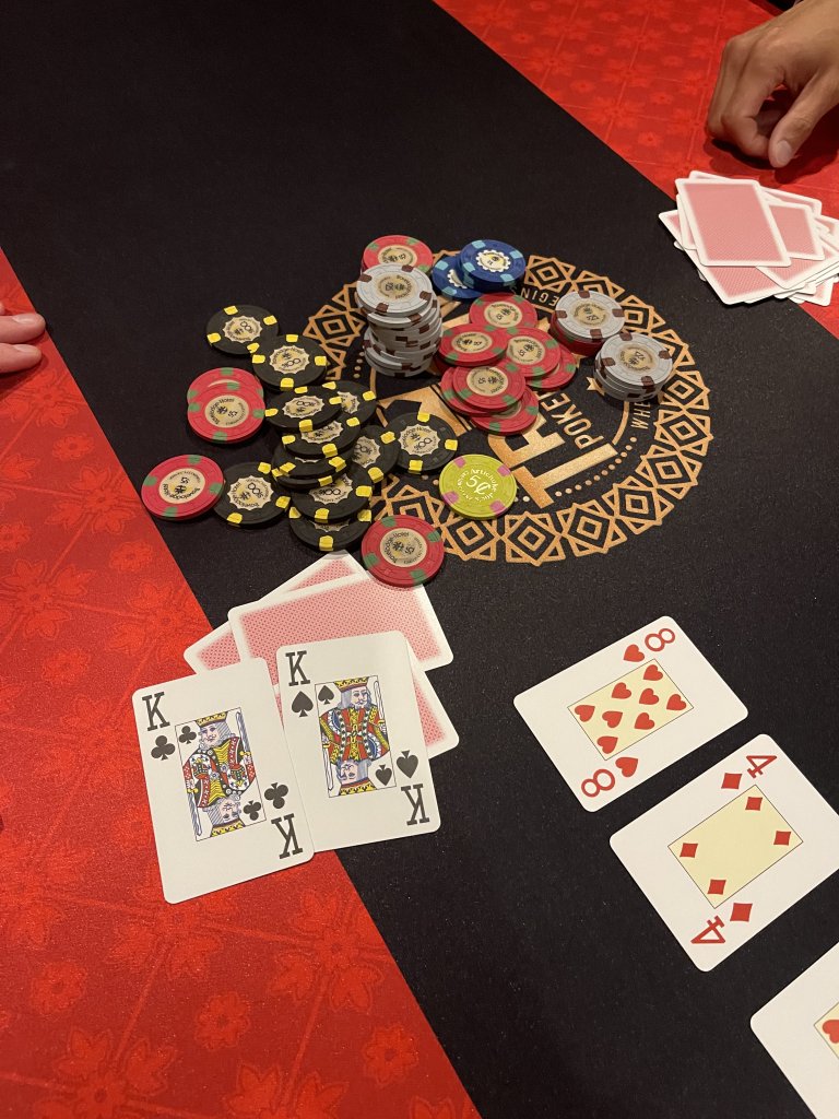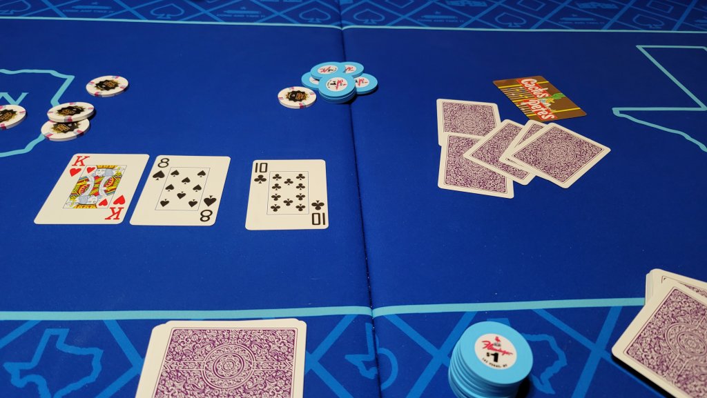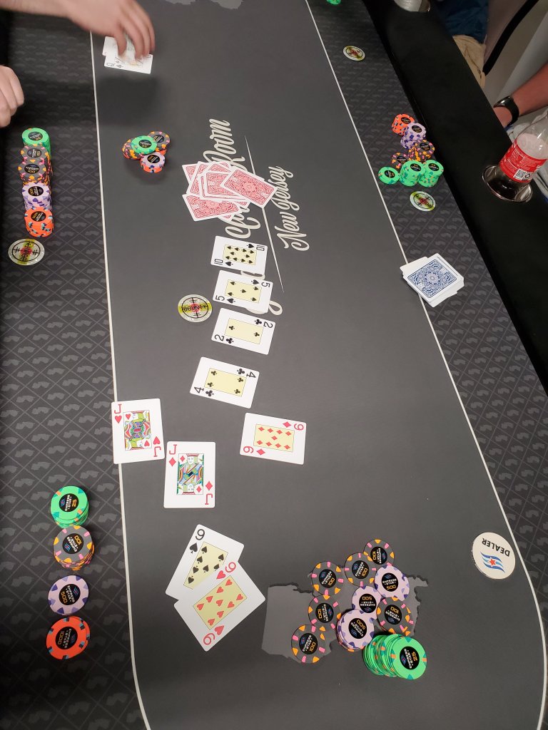 At a poker tournament, on both the early tables and the final table: Claysmith sword-and-spade e.g. Showdown (relabeled as as WSOP clone)