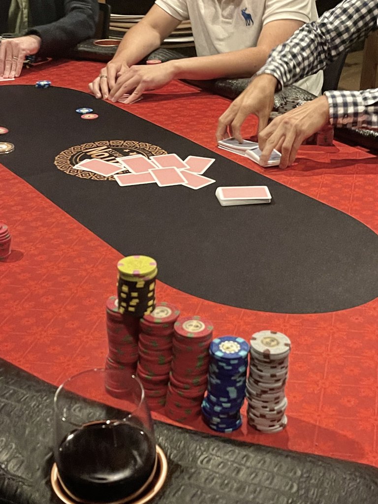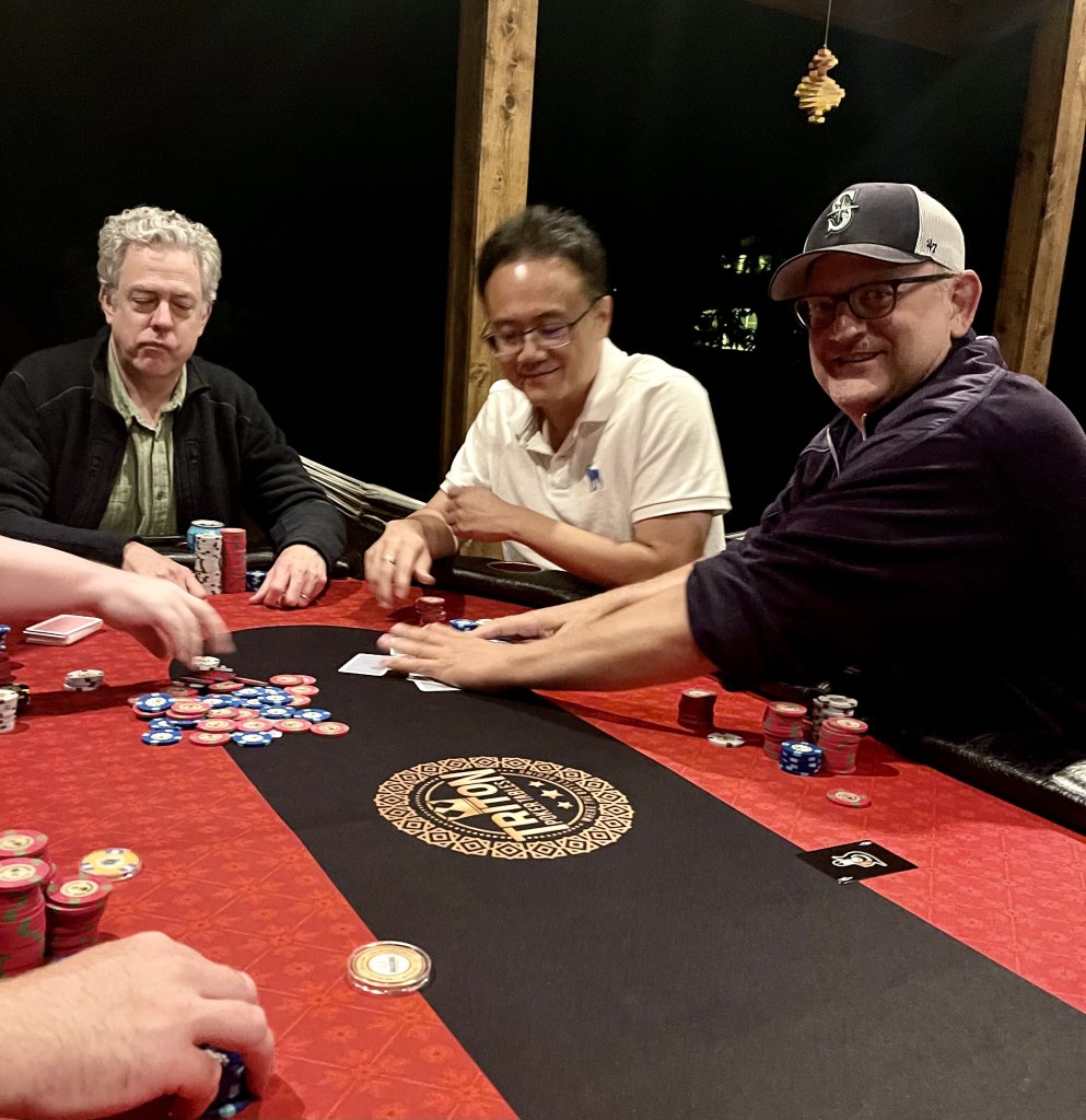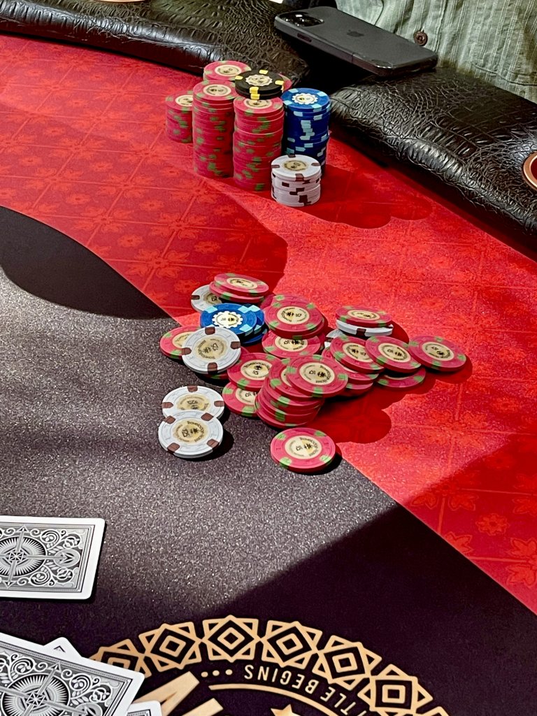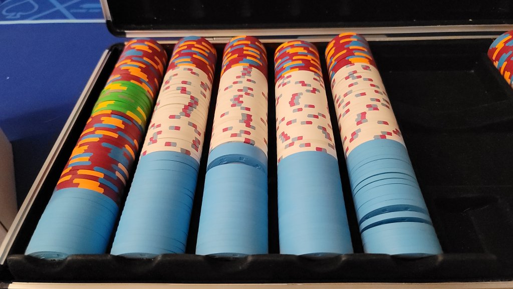 At a poker table: Claysmith triangle-and-stick e.g. The Mint (relabeled as "PCC")