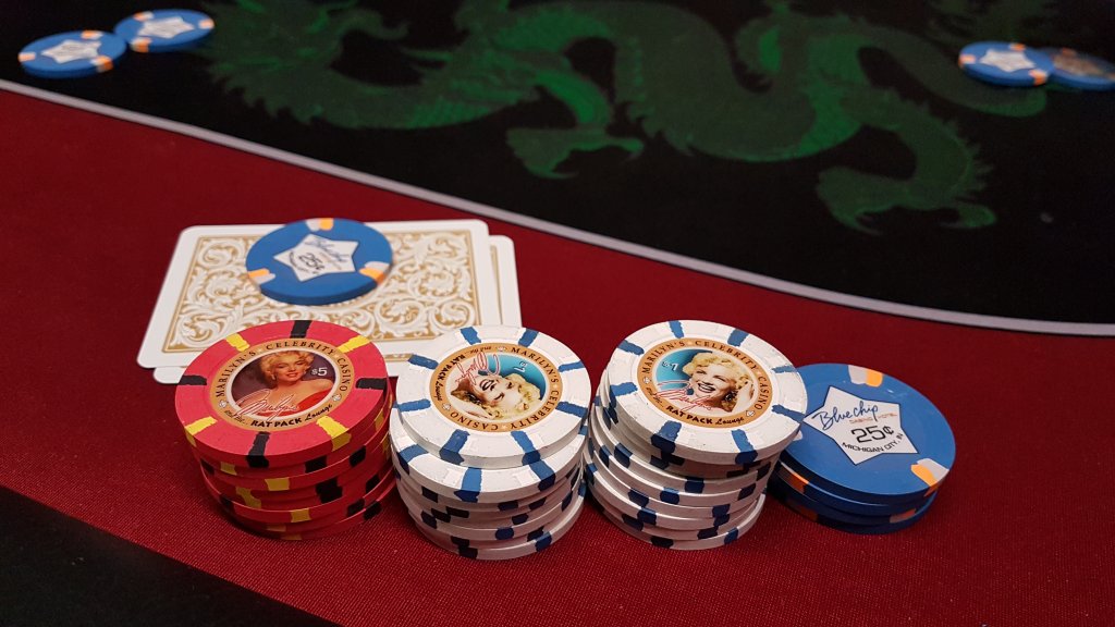 T10,000 starters...10 min blinds. We played two games and both broke even. Pulled out the Dunes tonight since they haven't seen the felt in awhile.