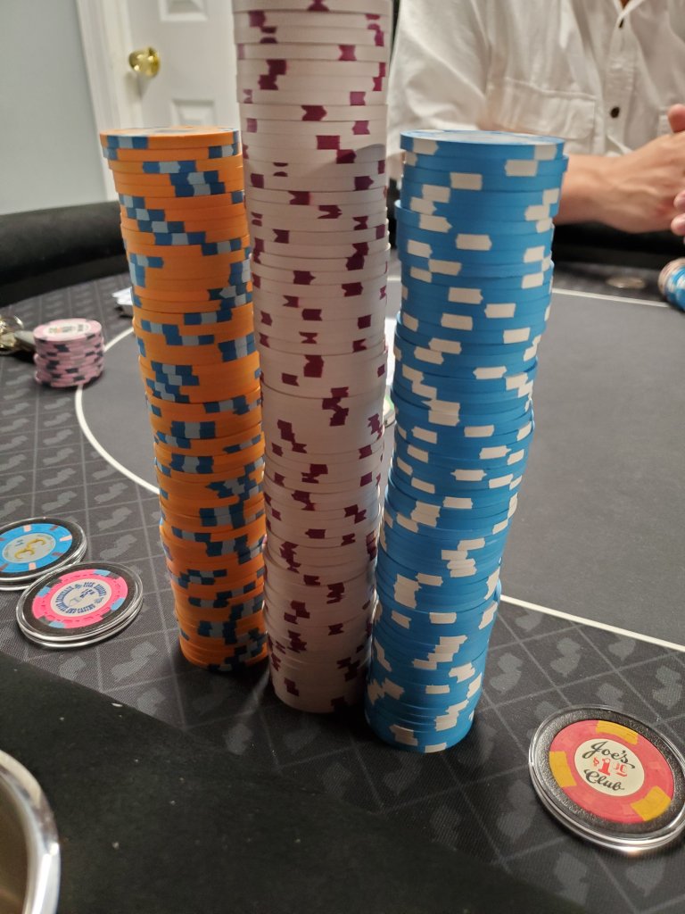 One player with deep pockets likes to drive the action and play for big pots. Use to be a friendly $40 buy-in game. Once in a while re-buys would hit $100. Now min buy is $40 with most players buying in for $60 to $100. Mr. Large buys in for $200 and always re-buys back in equal to the big stack at the table.