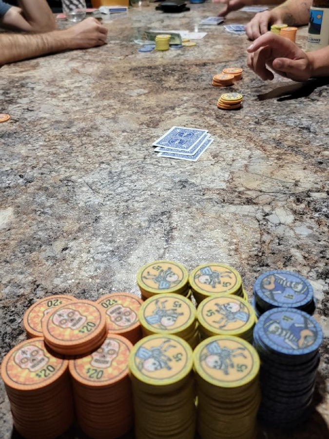 Played a 4 handed over the weekend with set of Stud Playing cards I found at a garage sale for a quarter. Flopped my highest hand ever - quad aces. Villain had KK. In for $30 out for $56.View attachment 986491