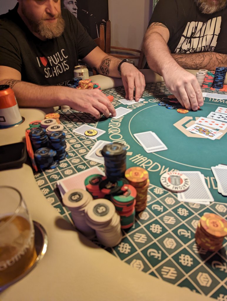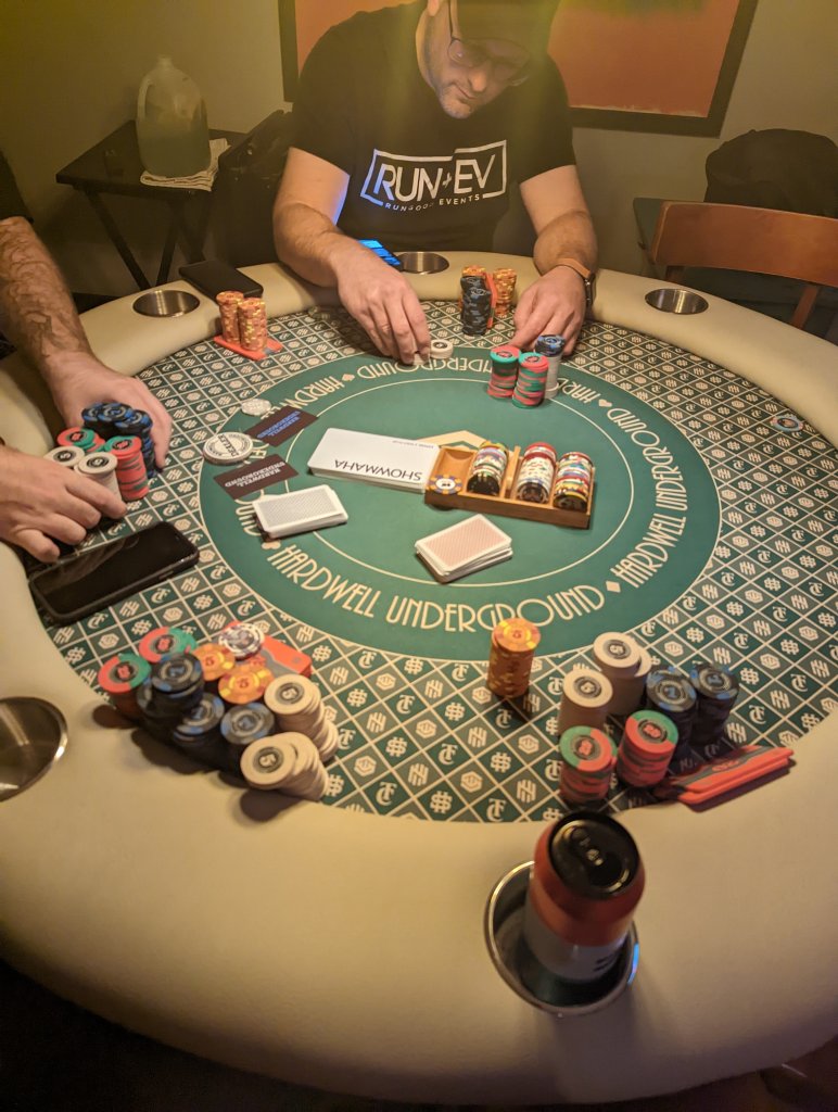 This month marks one year since I roped a bunch of friends into learning how to play the game, which quickly spun into a weekly Saturday game of tournaments and wild mixed cash games. Started with .05/.10 micro cash and are playing .25/.25 regularly now that ends up with anywhere from $500-1000 on the table