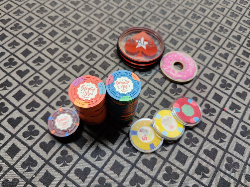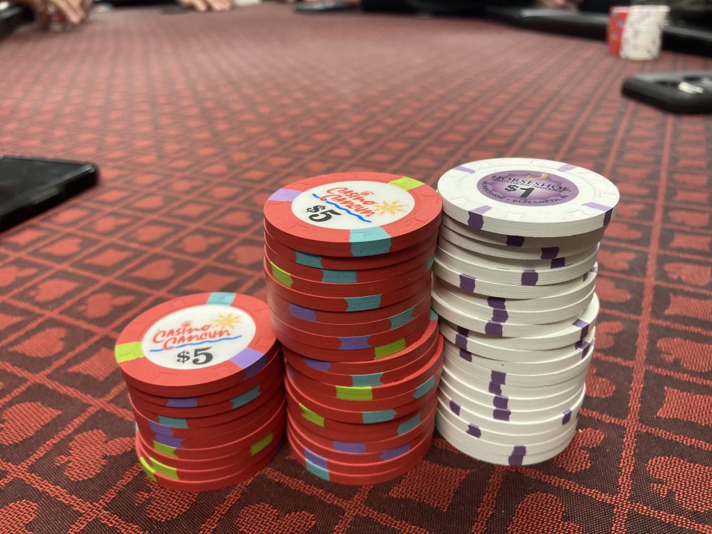 I made sure to get ALL the fracs on the table with the initial buy ins, then did rebuys and add ons with $1s and a few $5s and eventually just $5s, which I think helped as well.