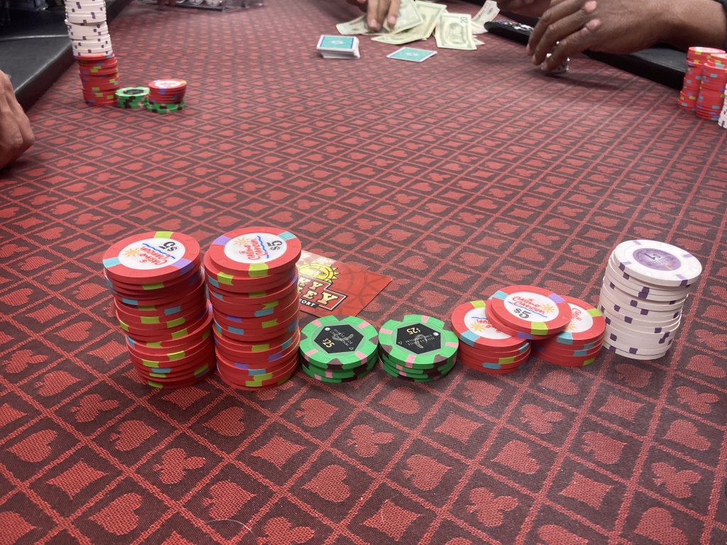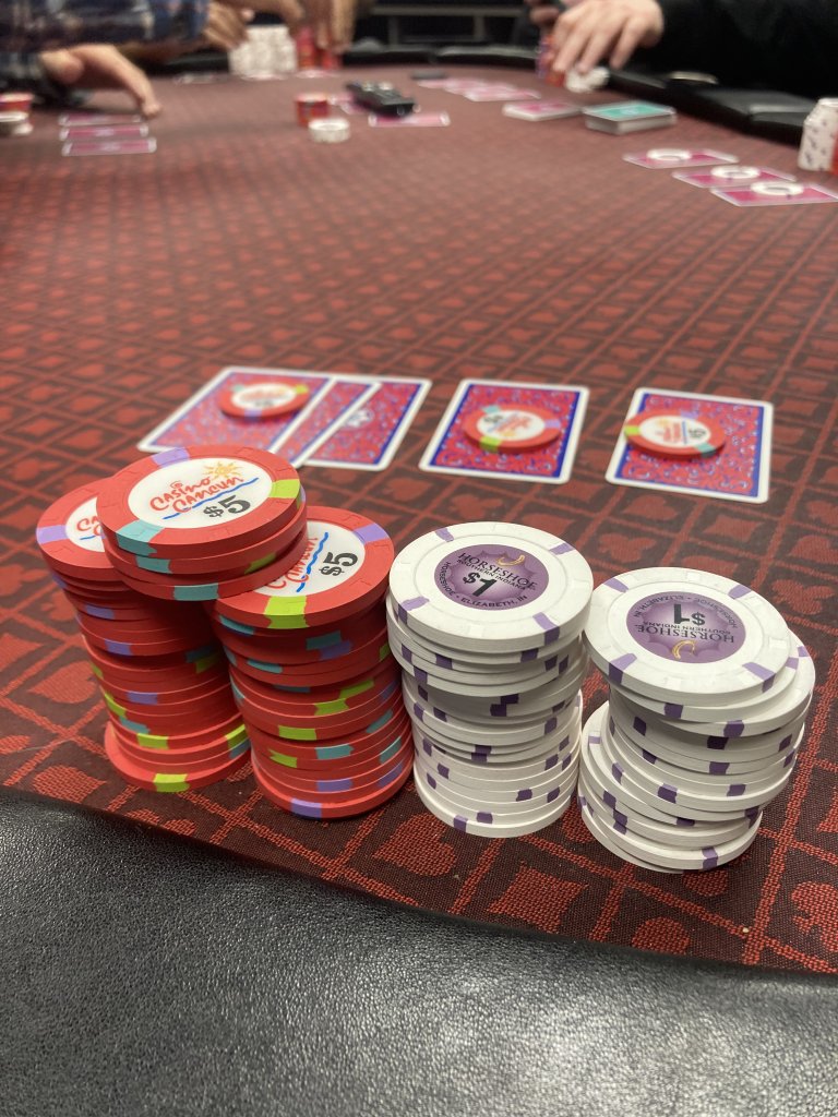 In for $50 and out for $121 on the cash game, in for $30 and out for $0 on horse racing after the hold em game broke.