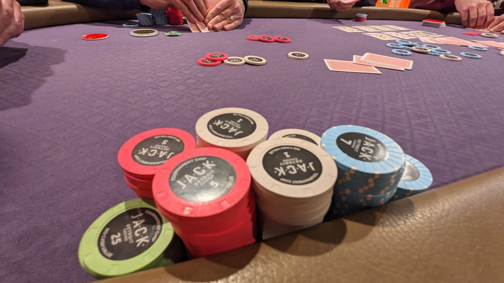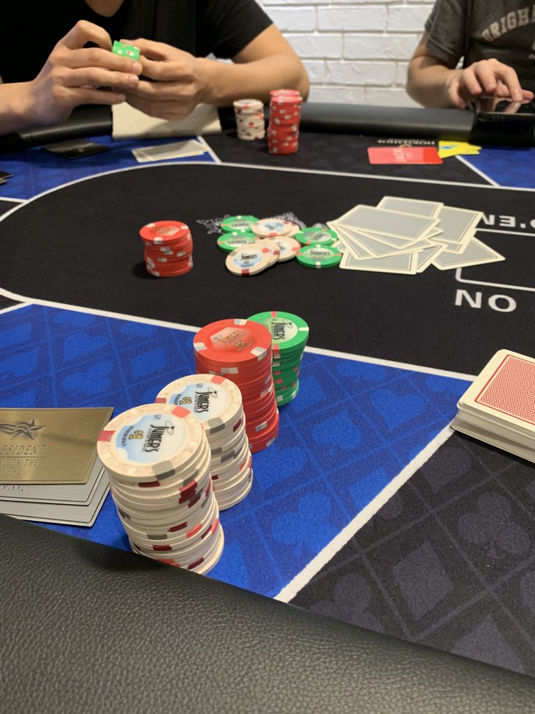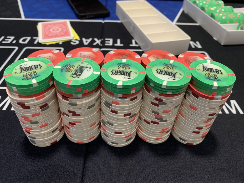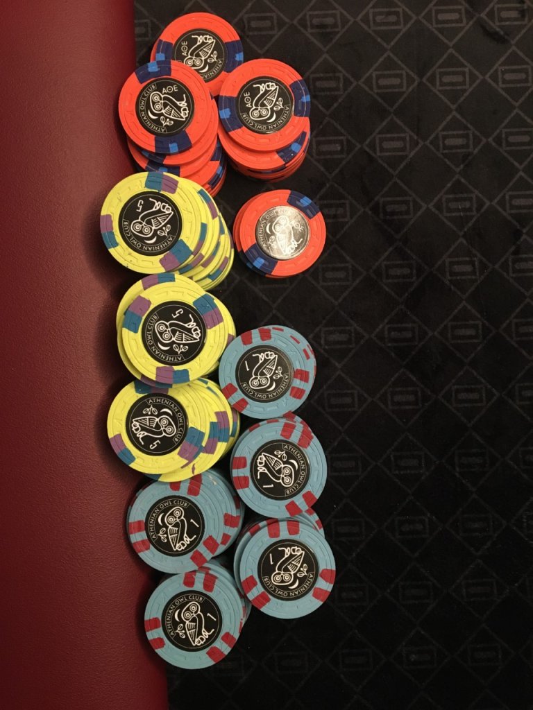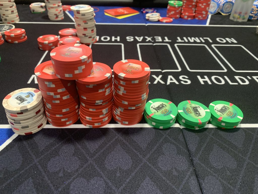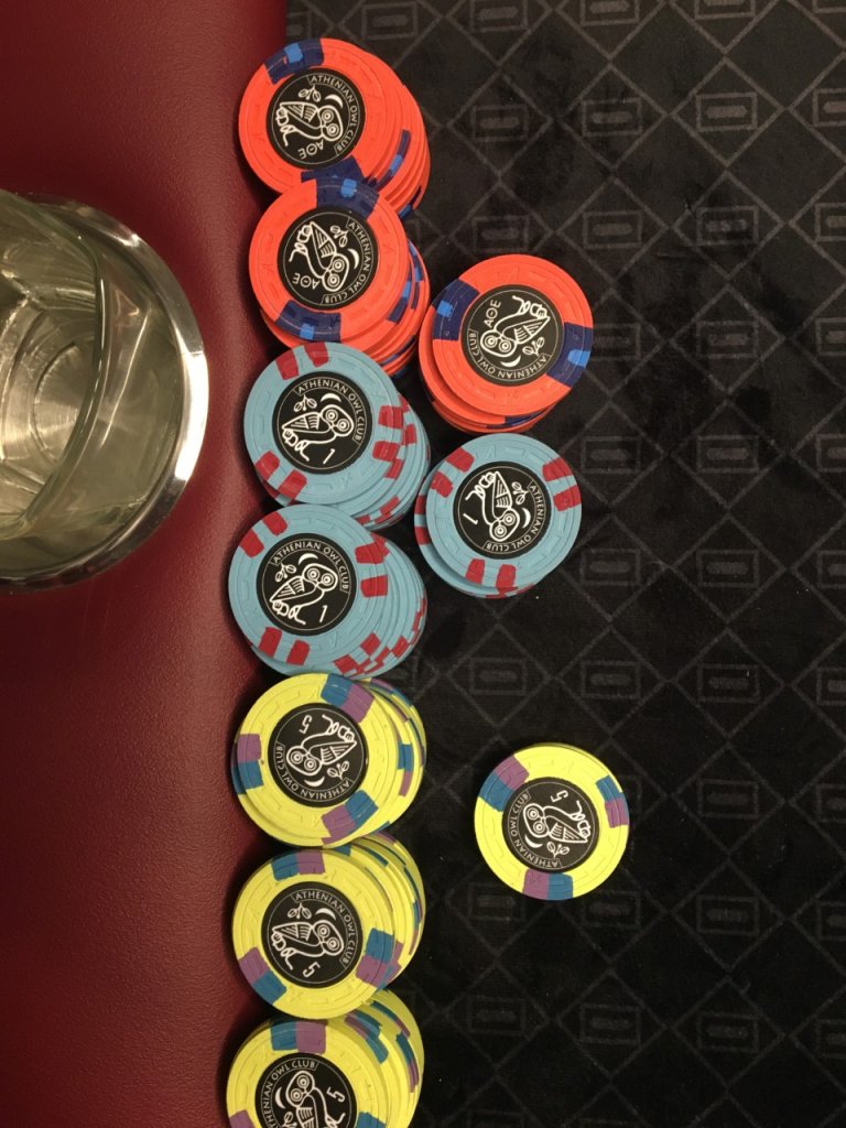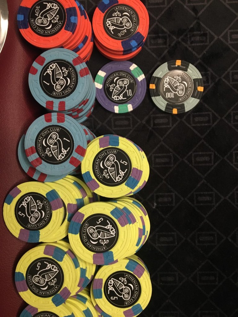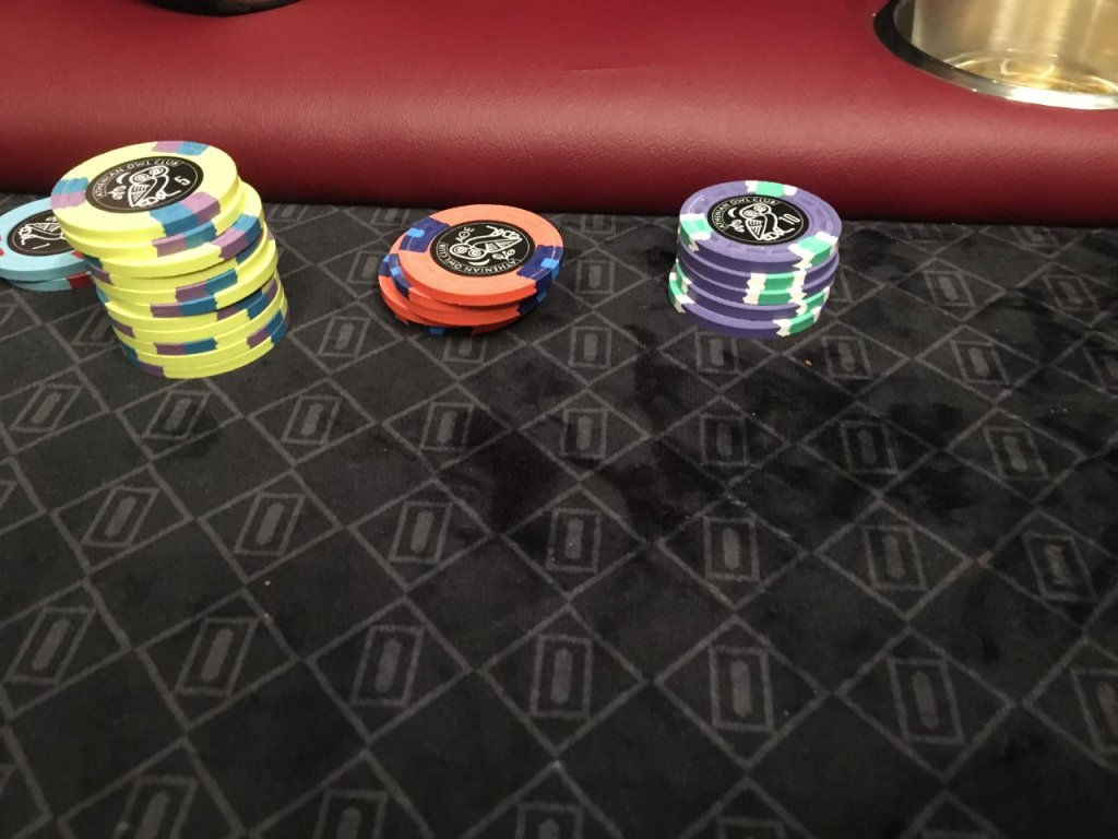 Final picture of the session taken at 5AM, shortly after Hero cleaned up. To keep the flow of the game going, chips were exchanged for the two one hundreds on the table when we were down to three players.