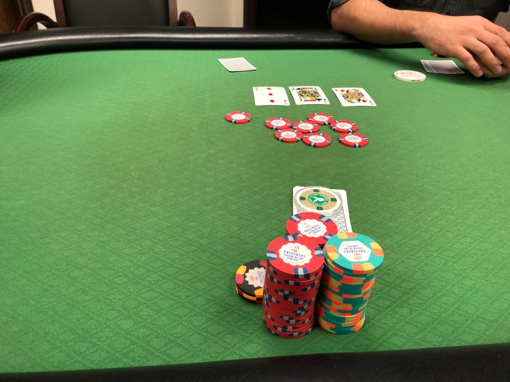 Couldn’t get much going on in the first couple hour, bleed down to around 20bb before I topped up another 100bb to the stack