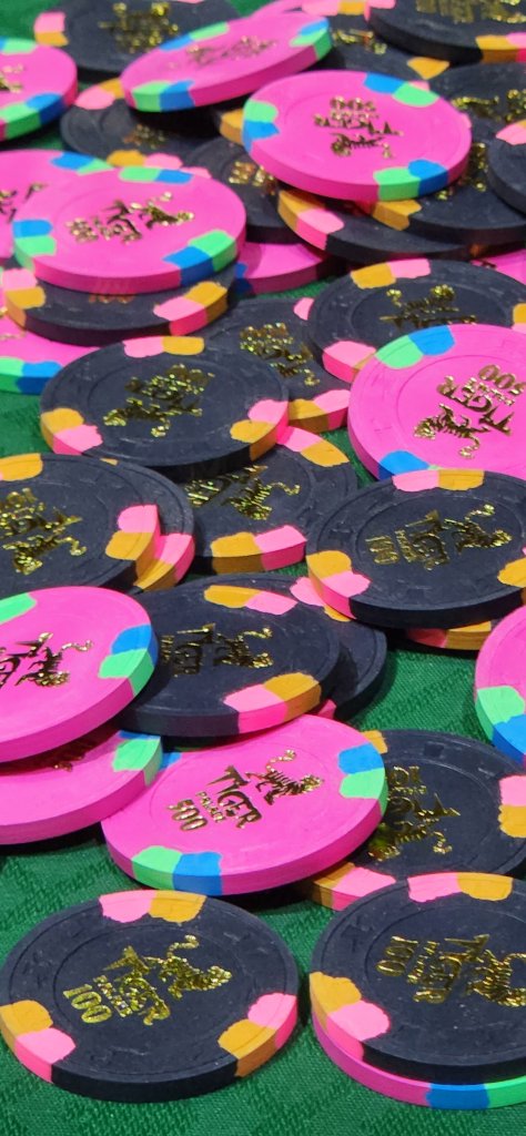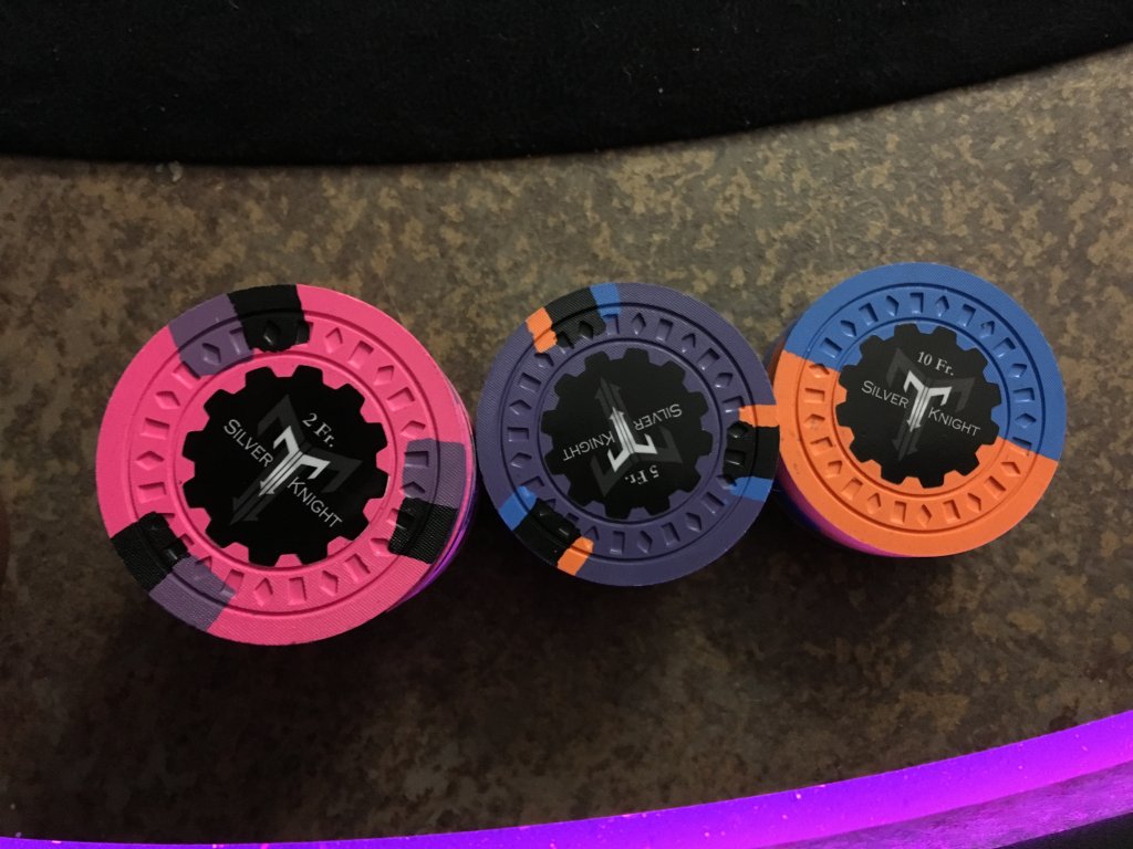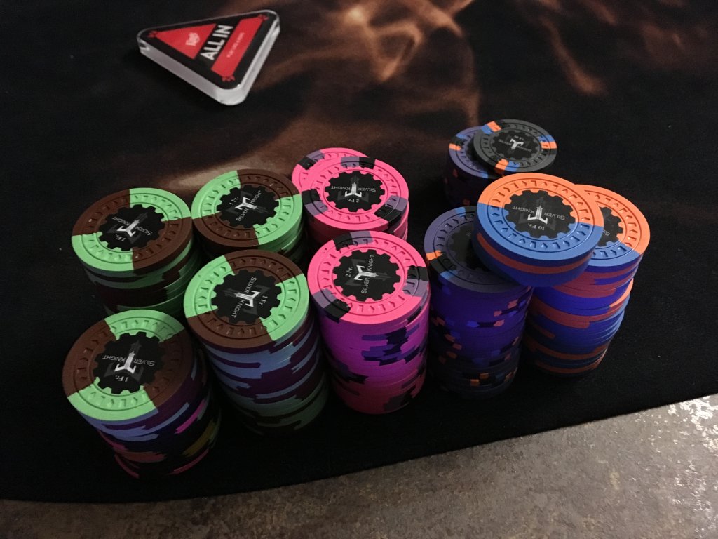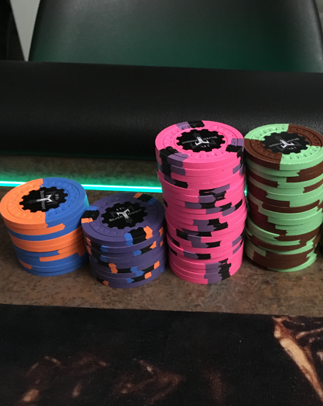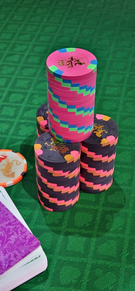 Cash-game night at a friend's house (not present on PCF) who bought his first clay chips set this year. Don't ask me about denominations. If I did not succeed in dissuading him from adopting shaky and useless ones, I succeeded in doing so for the second customized set he is currently designing. I think he has caught the virus that has affected us all. Without doubt you will see him arriving here shortly.