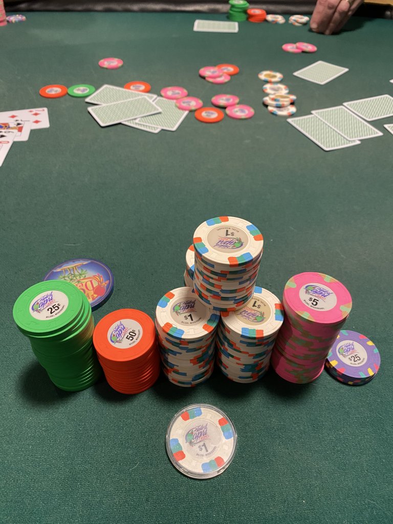 Another spread limit game where the average buy in was $50. I bought in for $100 to see MOAR chip on the table. Played hold'em, pineapple and Omaha.
