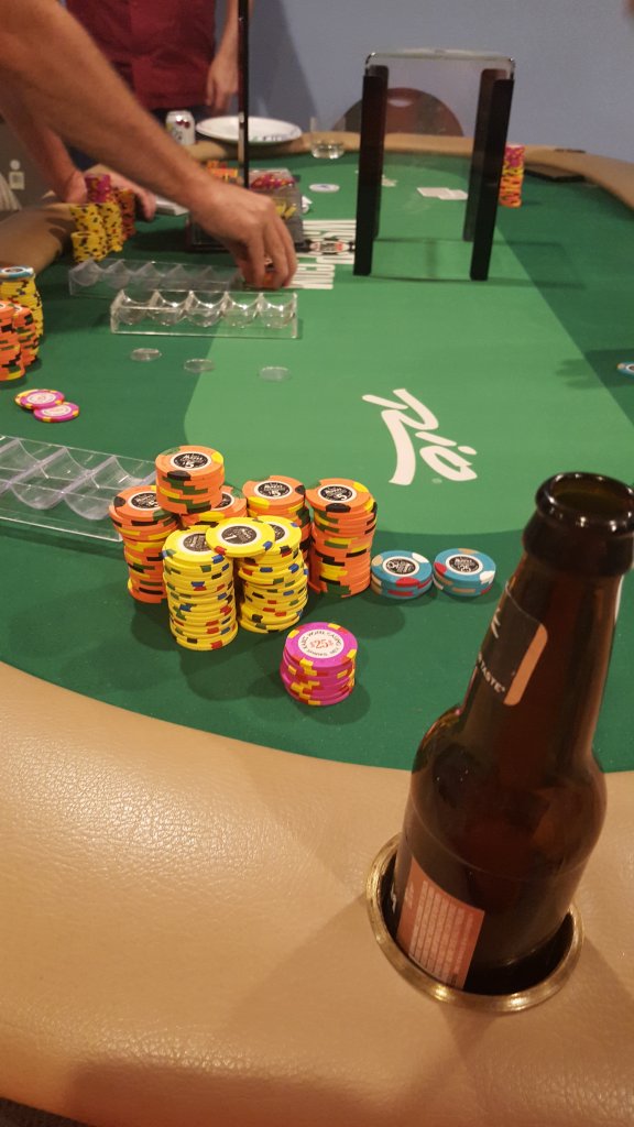 Another friend hit this sick hand. Flopped quads. Unfortunately he gives good hands away too much so the other guy in the hand knew he had something so just called all the way to show down cause he had the flush. But none of us thought the other one had quads. We figured the flush or trip kings. Still, he could have gotten more value. I ended up binking the game after being all in heads up at one point. Clawed my way back to win it. Finally ended my streak of 2nd place finishes and not being able to do anything heads up