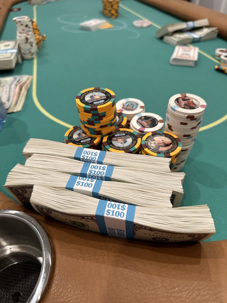 I’m a tired dad lol. Fun was had, game got a little out of hand with like $5500 on the table in a seven handed “$1/1” game. New chip set was fun, even if it took a little getting used to 39 and 43mm workhorse chips.View attachment 1106878View attachment 1106879