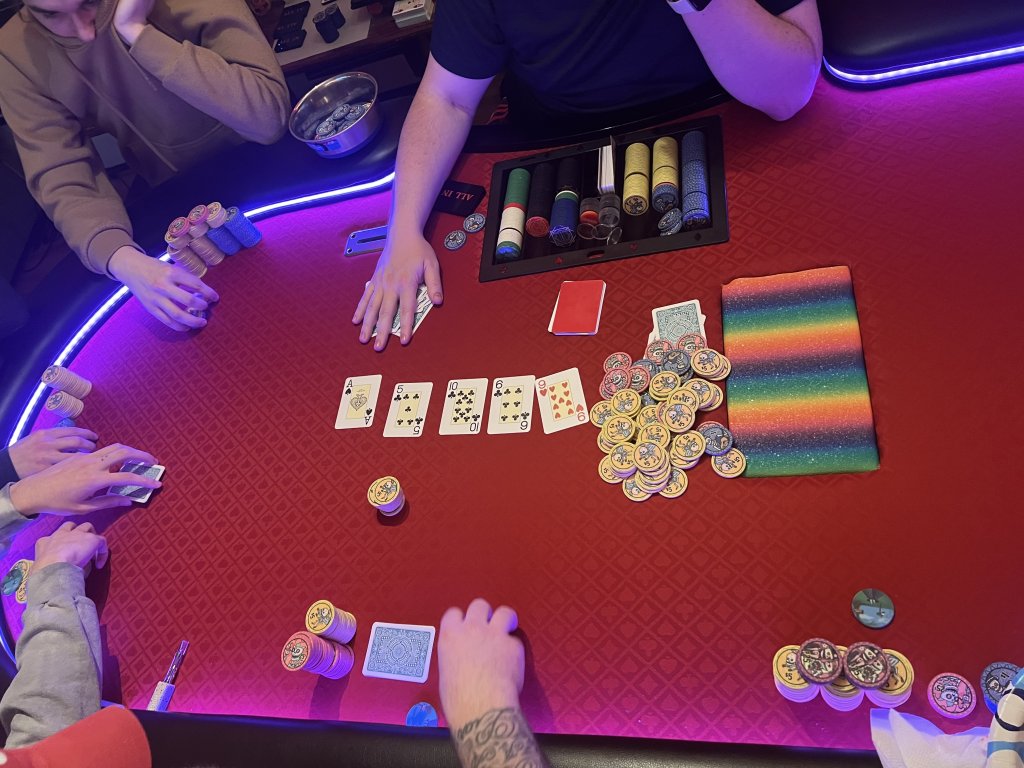 It was just 5 handed 10c/20c with $10 buy in, between close friends whom I have known for approx 10 years. I have been playing poker for a long time but never with my friends, they probably only play once a year if at all. Wanted to post here as I used this forum was very useful in helping me set up the game.