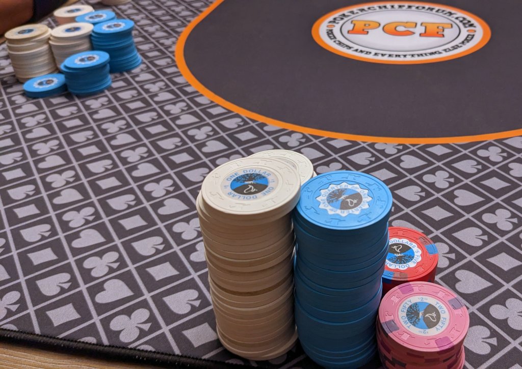 Just to show how little people outside of this hobby care about the chips they use. After an hour or so I brought out some recently purchased solids, my mother inspected a few of the radiant red’s, put them back in the box and a few minutes later proceeded to ask me why I would relabel chips that already look nice with a picture of a girl in a bikini. She didn’t even notice the difference between my pink lemonade quarters (that she had been playing with for an hour) and radiant red roulettes