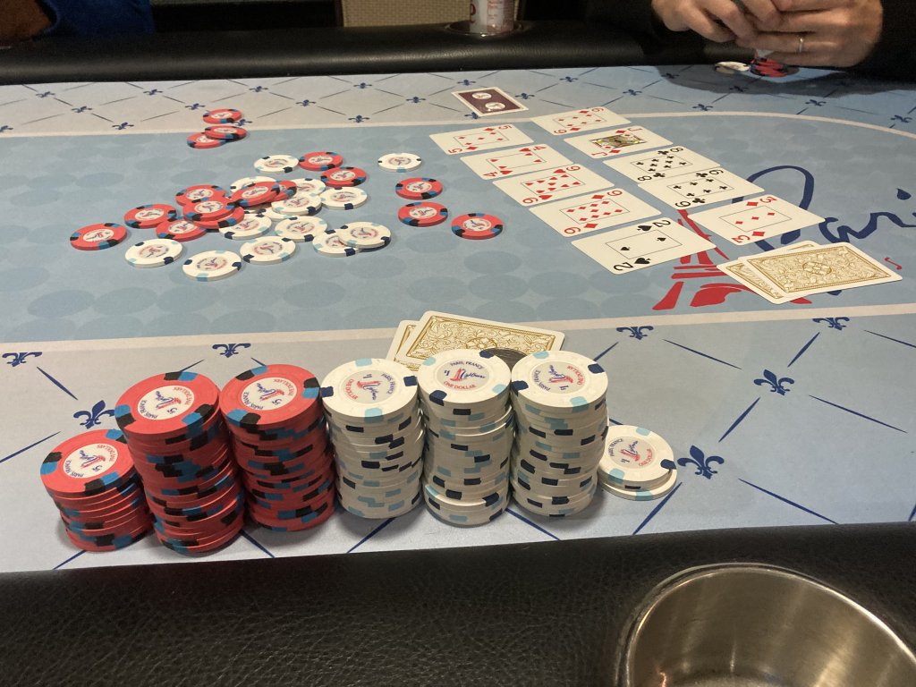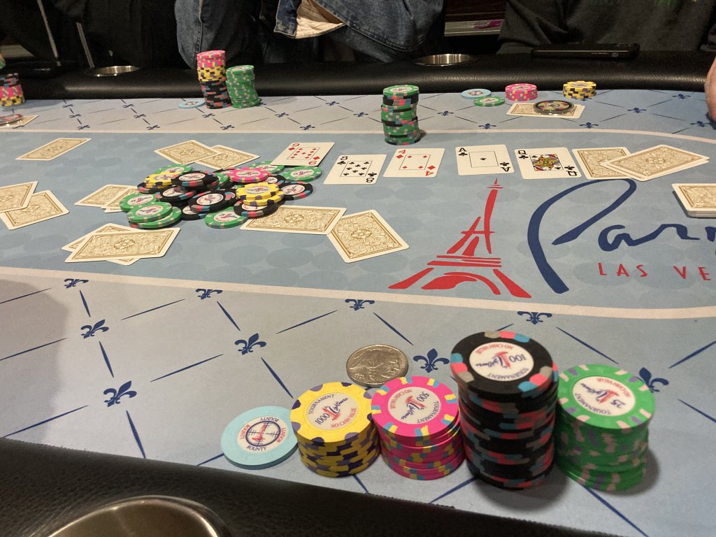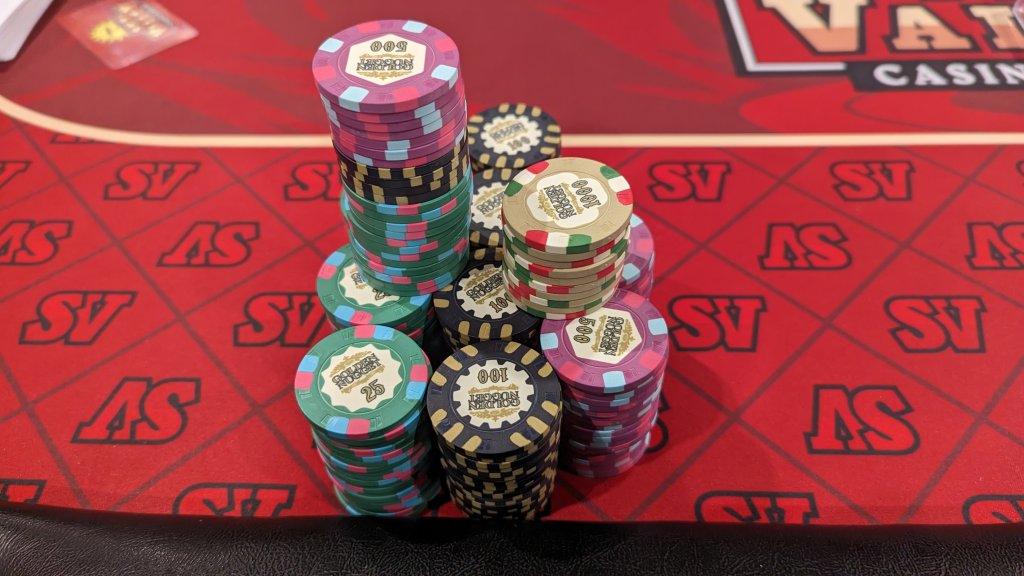 Got sucked out on to exit the tourney early, but cash game afterwards proved fruitful. In for $100, out for $437.