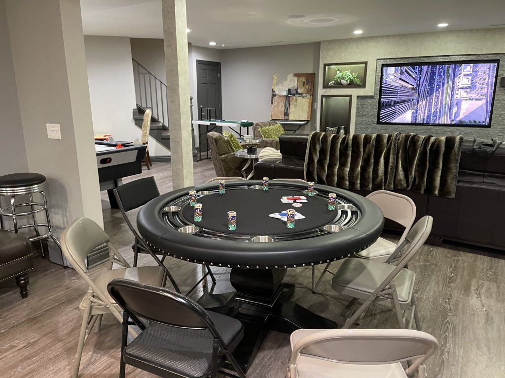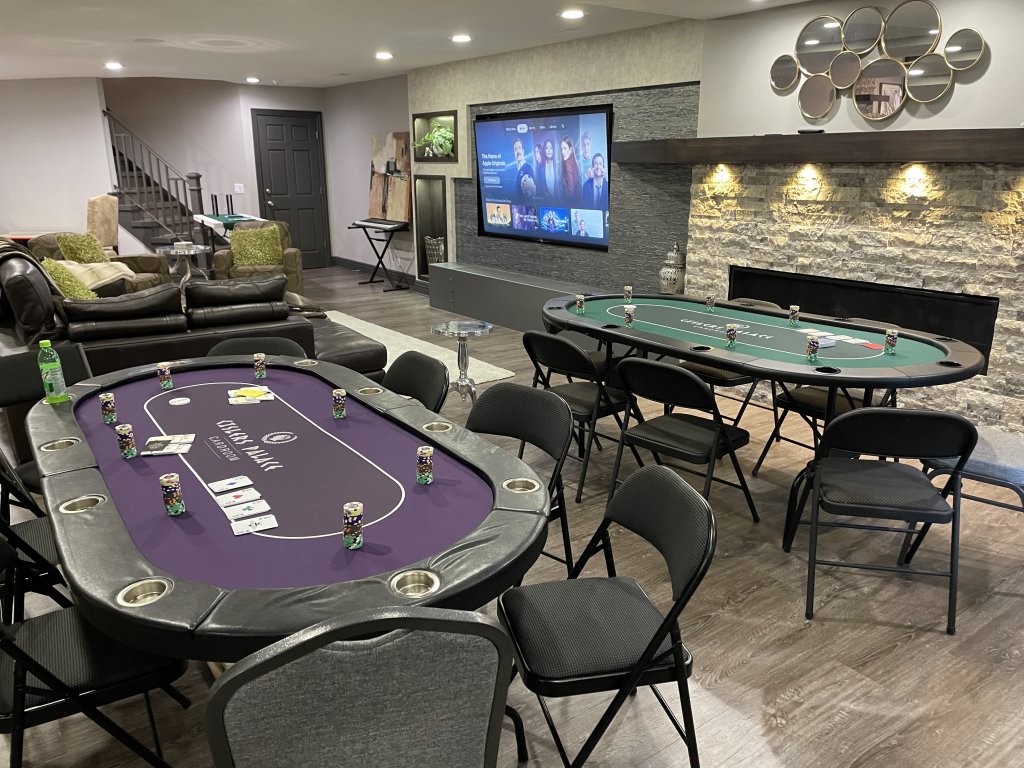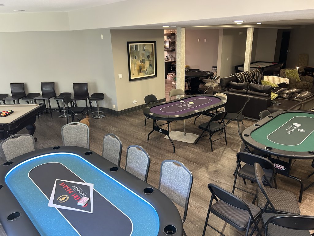 Very impressive layout!Hosted our league tourney last night…4 table event, 31 players in the house: 15 league members + 13 nonmember guests + 3 that came for cash game only. Here are some pics of the setup: