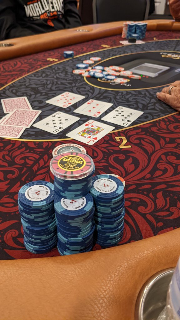 NiceGot invited to a poker game in my own neighborhood tonight. fun group so far, at least until they start taking my money