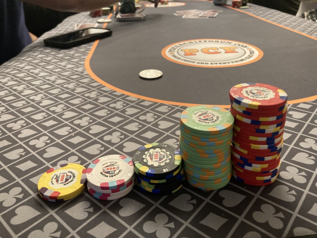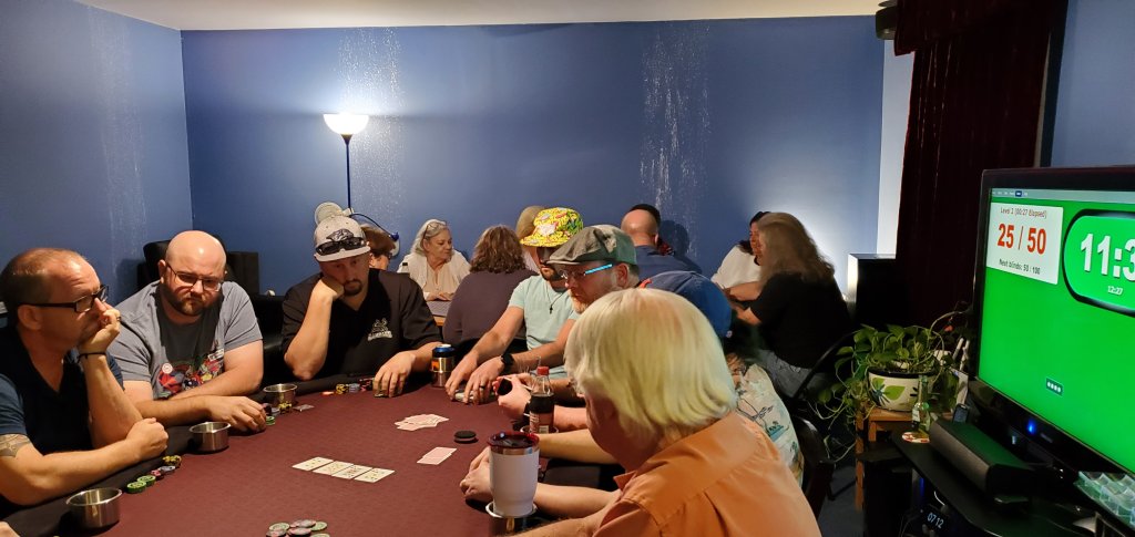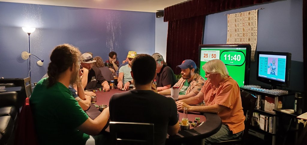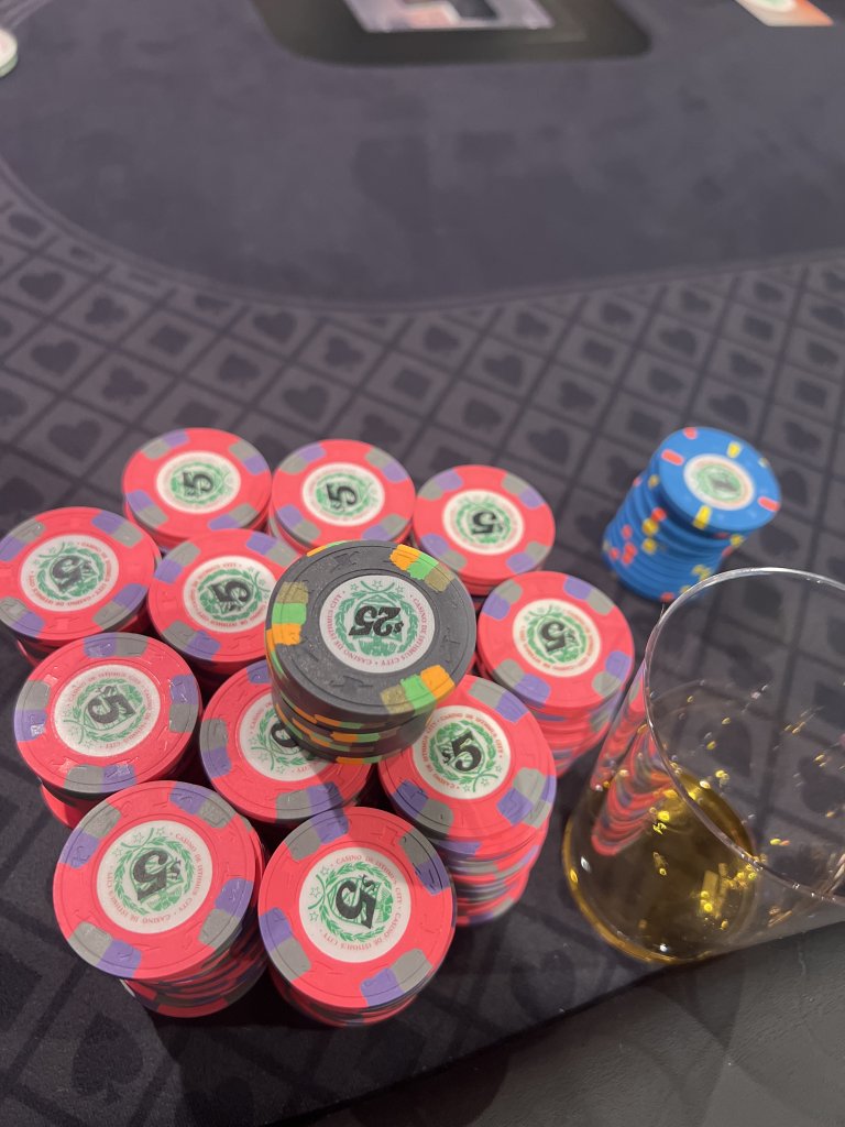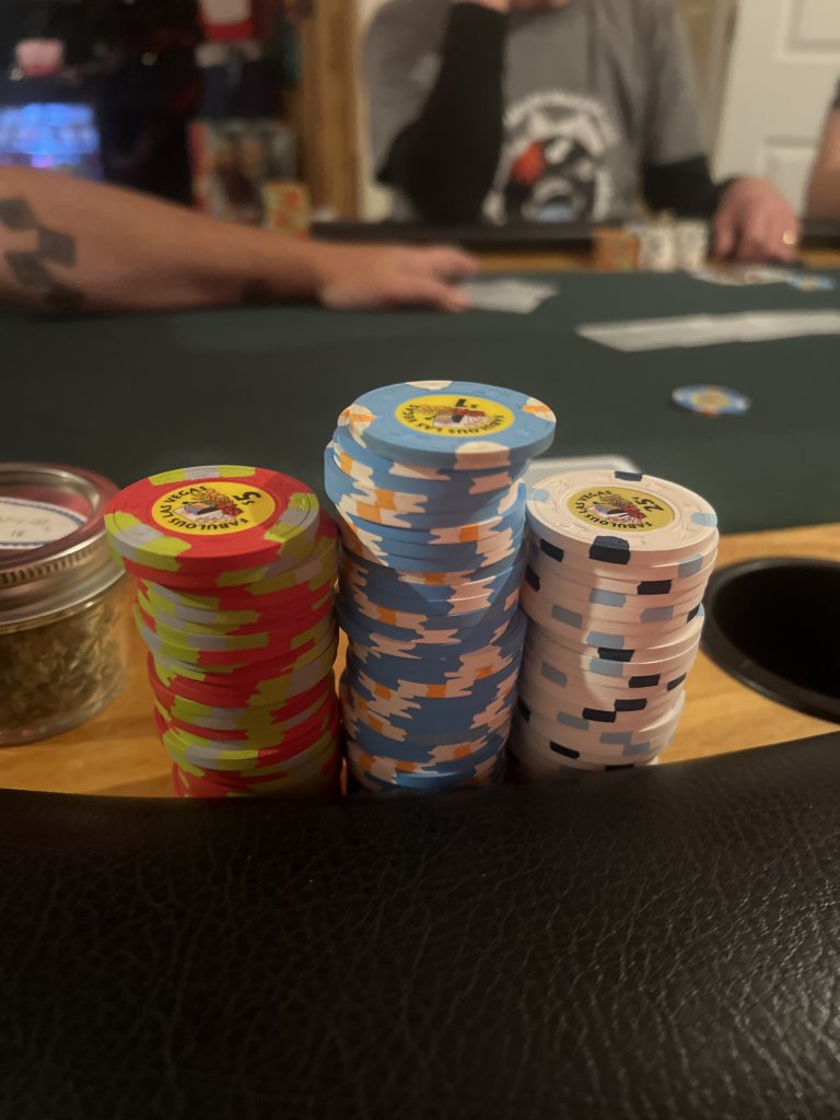 Tuesday tourney with some dealer’s choice cash after. For some reason, the kid brought stacks of cash last night.