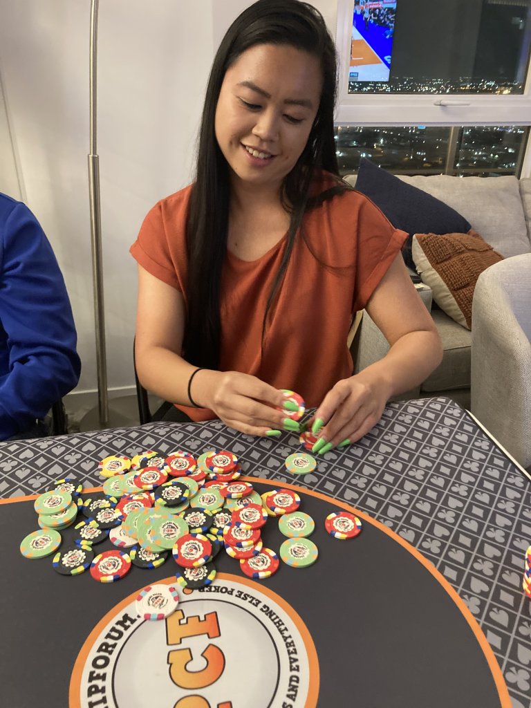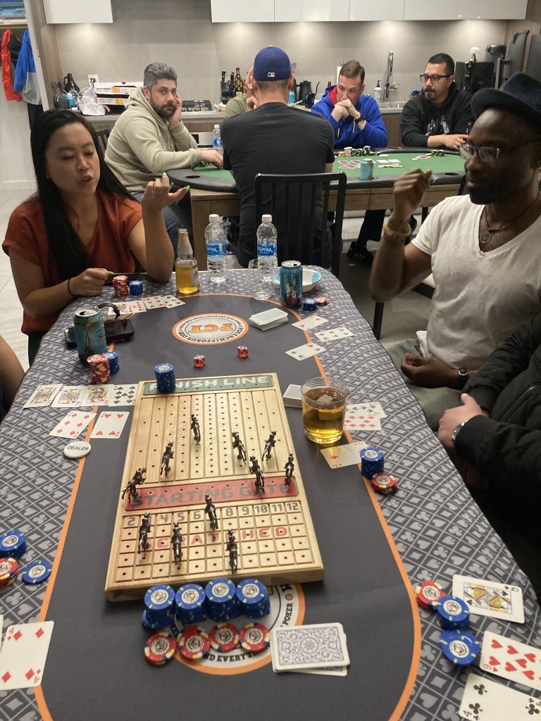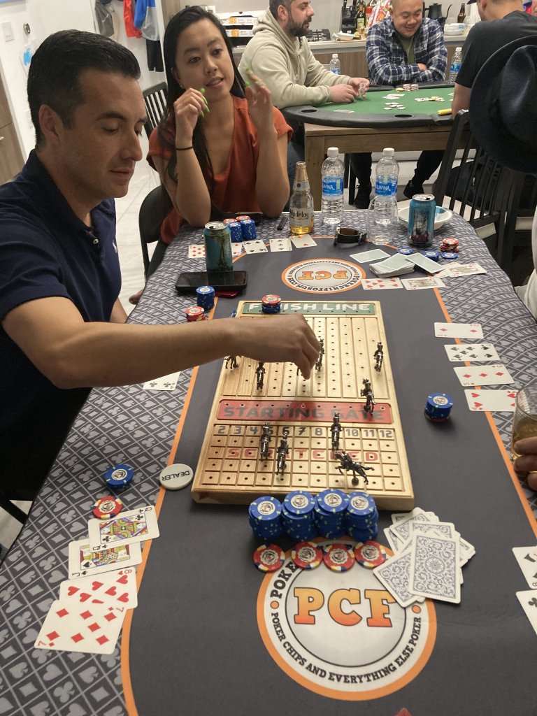Where did you get those Caesar's Palace chips?Poker night with non-poker players. Did a little tourney first followed by cash, which ended up being100% horse racing. Fun night.