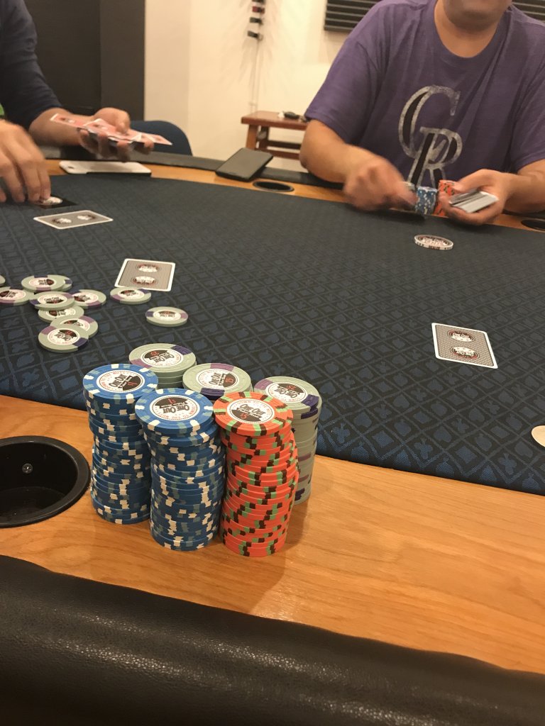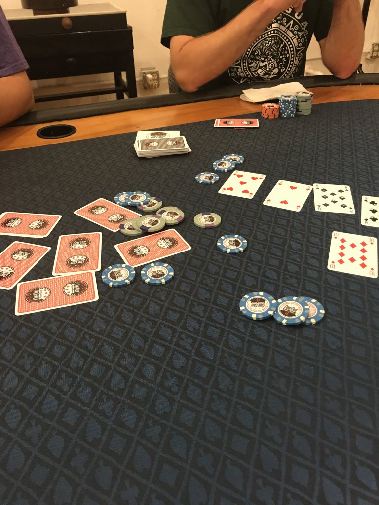 Despite the plethora of cards available to use, the two hands that won were horribly bad. And we were 4 handed. We played pretty conservatively that night, 5 of us, each bought in for $20 and nobody went busto. I think I was the loser of the night down from $20 to $10.