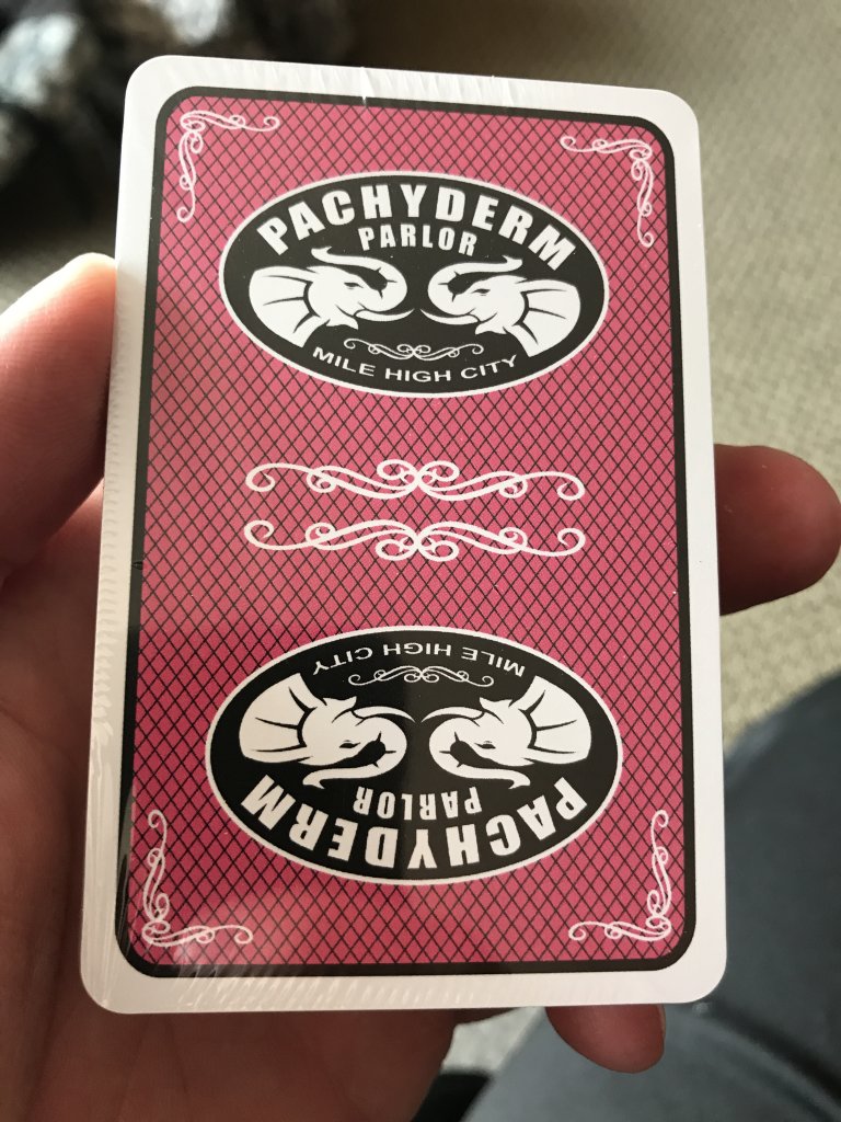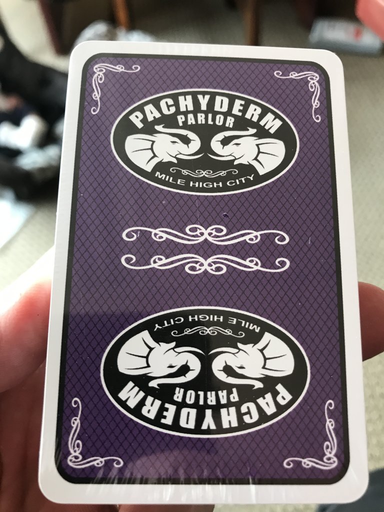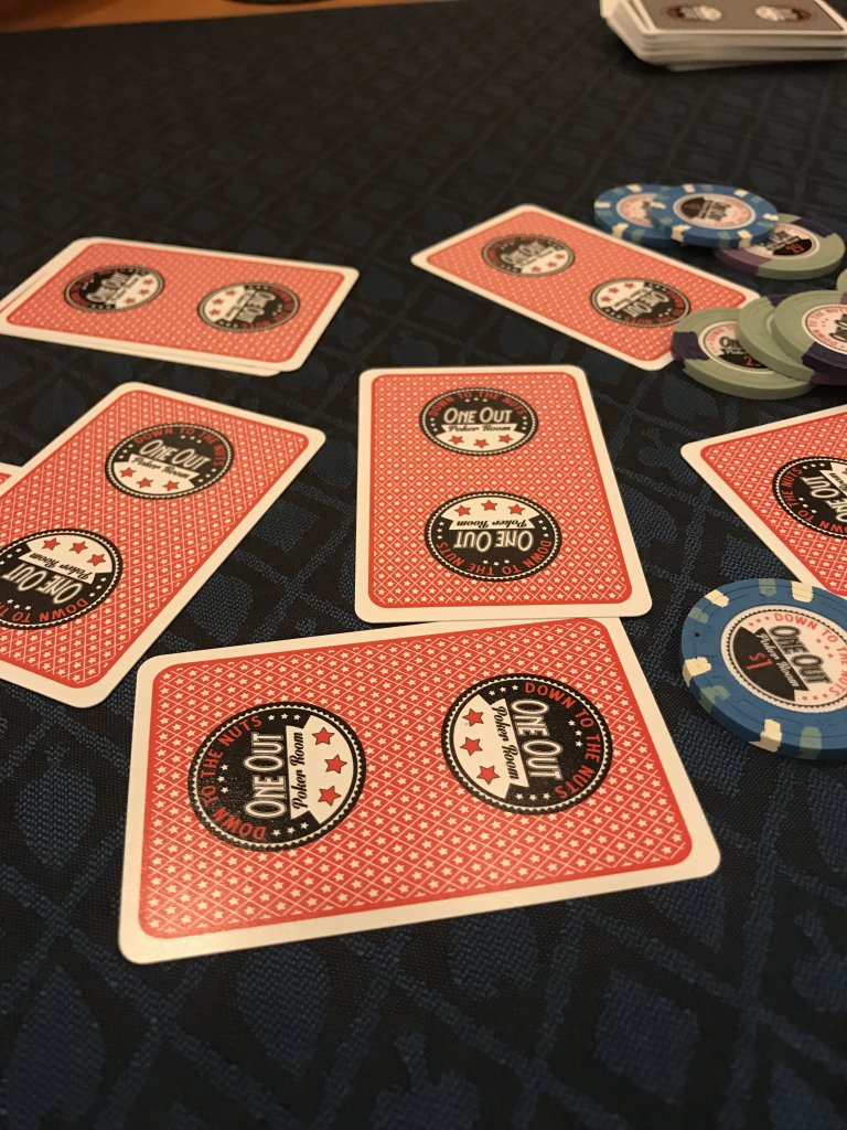 And a huge thanks to @Chbyfngr for letting us use the custom cards he got from Make Playing Cards. I have to say, I was a bit reluctant to try custom decks, as I've had mixed experiences in the past, but these things are the real deal. The quality is top notch, there was no fading or scratching of the cards while we played with them, and they feel very similar to DESjGN cards.