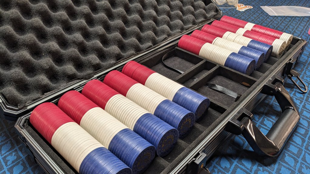Pics from tonight's $1/$2NLHE game. Hero bought in for $250.