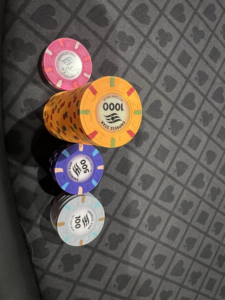 .50/1.00 LHE with a group of newbies. Roulettes for 25¢’s, Horseshoe Cleveland $5’s. Lucky Lady $1’s naked ladies giveaway for participants.