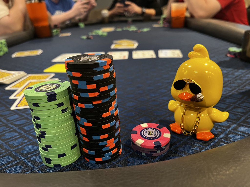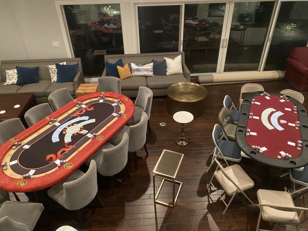 Anyone know how @TKEUofM celebrates his 22nd wedding anniversary? He invites 26 guys to his house and hosts a 4-table tournament! *And* it was his wife's idea! He got a good one, for sure.