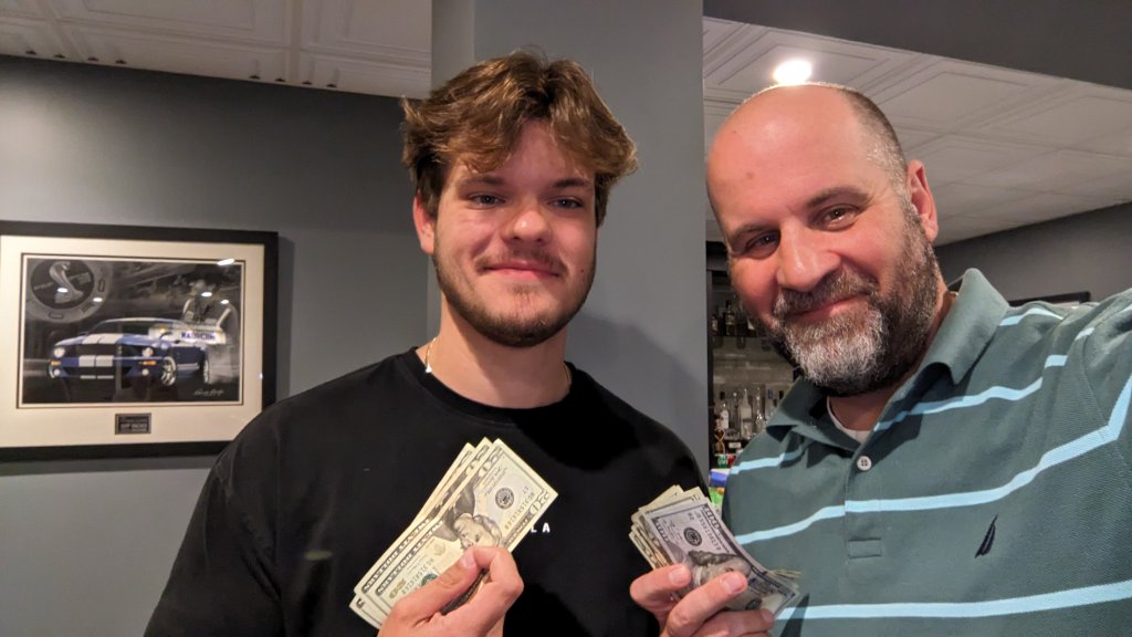 My son and I didn’t do nearly as well but still had fun. @TKEUofM your basement is an awesome space to play poker. Thank you for the glass of bourbon as well. Great group of people you have and an easy back road drive from our house. Happy Anniversary as well!