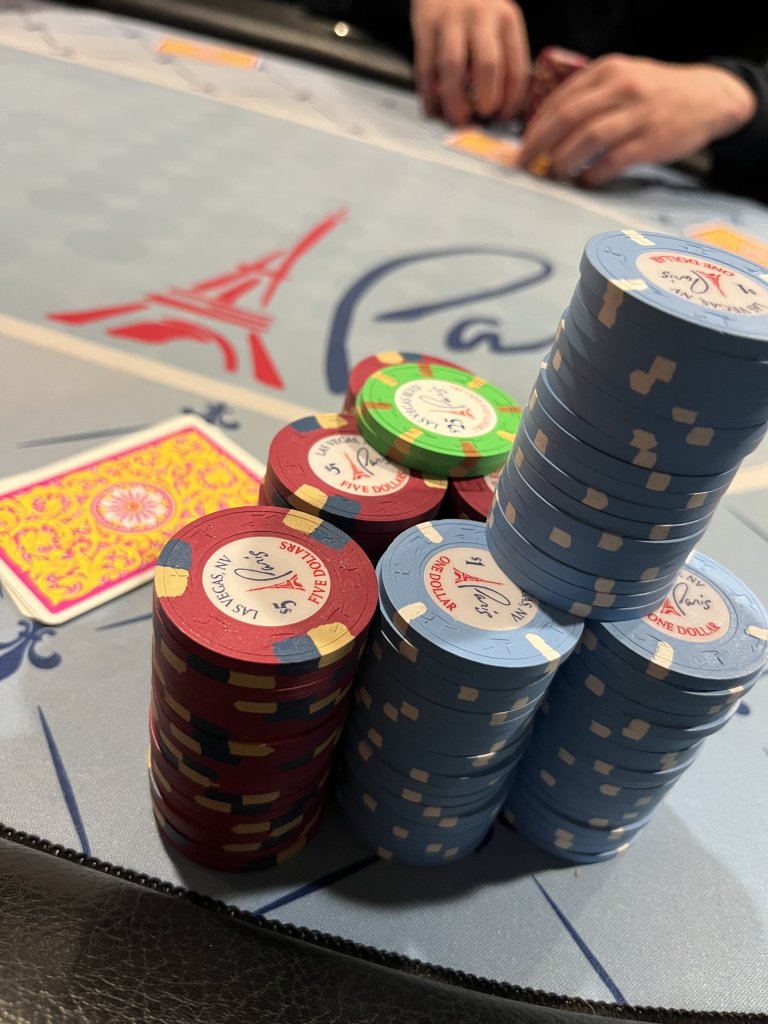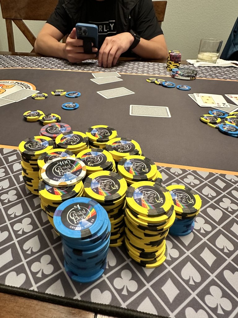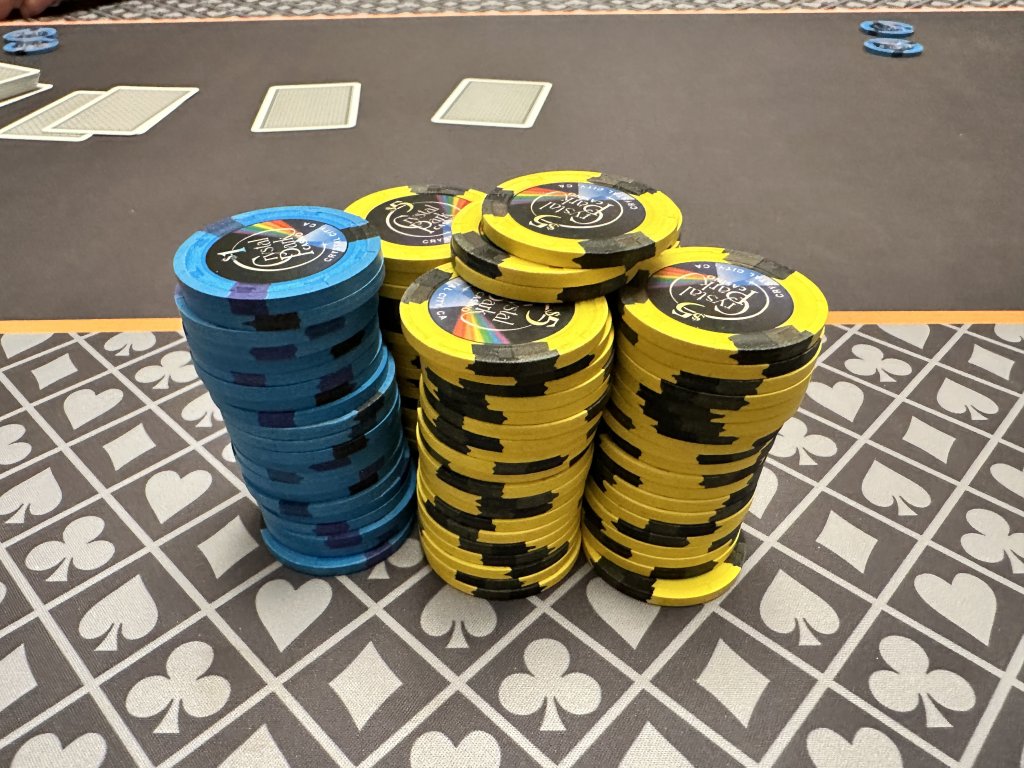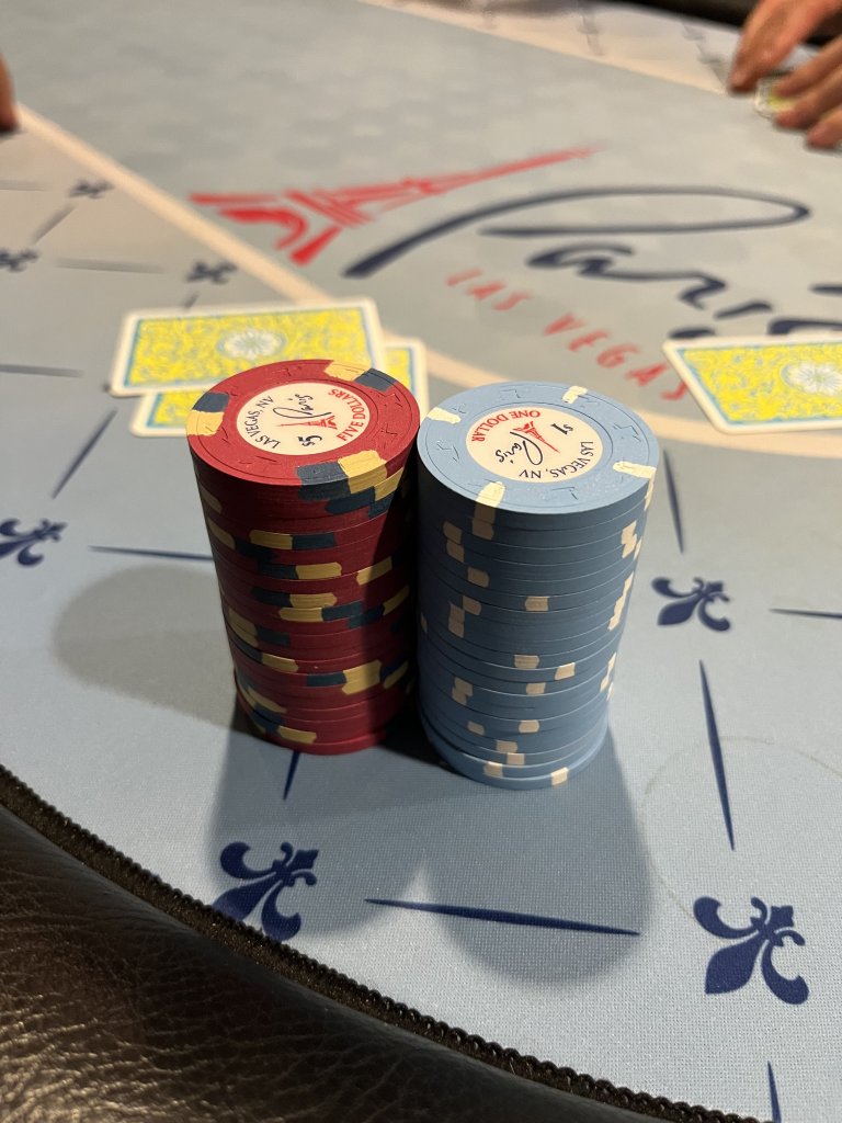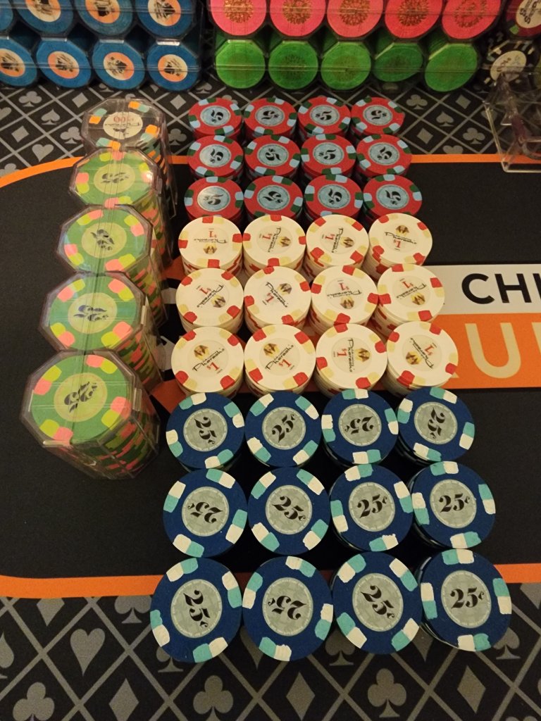 I’m the only one I know who does this, two full barrels of 25s and 100s in the 20K starting stack for our annual fix limit HORSE extravaganza. More chips is better in fixed limit and it applies to tournaments as well to some extent. I love it because people making change is a bare minimum, especially helpful for the stud games with all the antes.