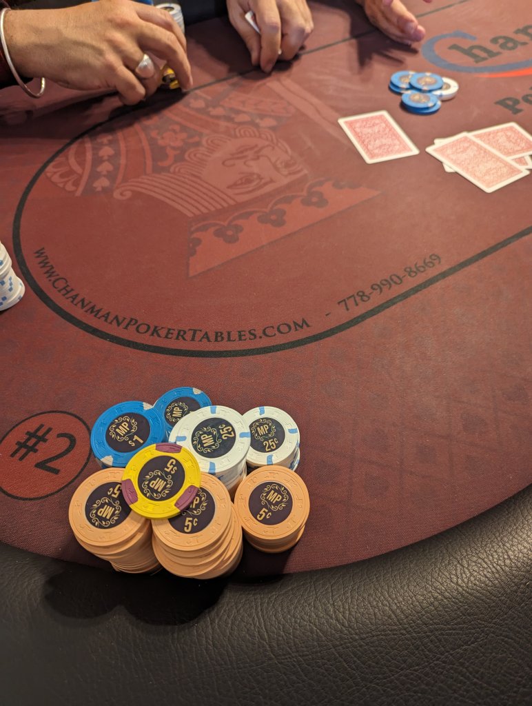When I asked about maybe using denominated chips or keeping it limited to three colors on the table at a time, I was greeted by blank stares.