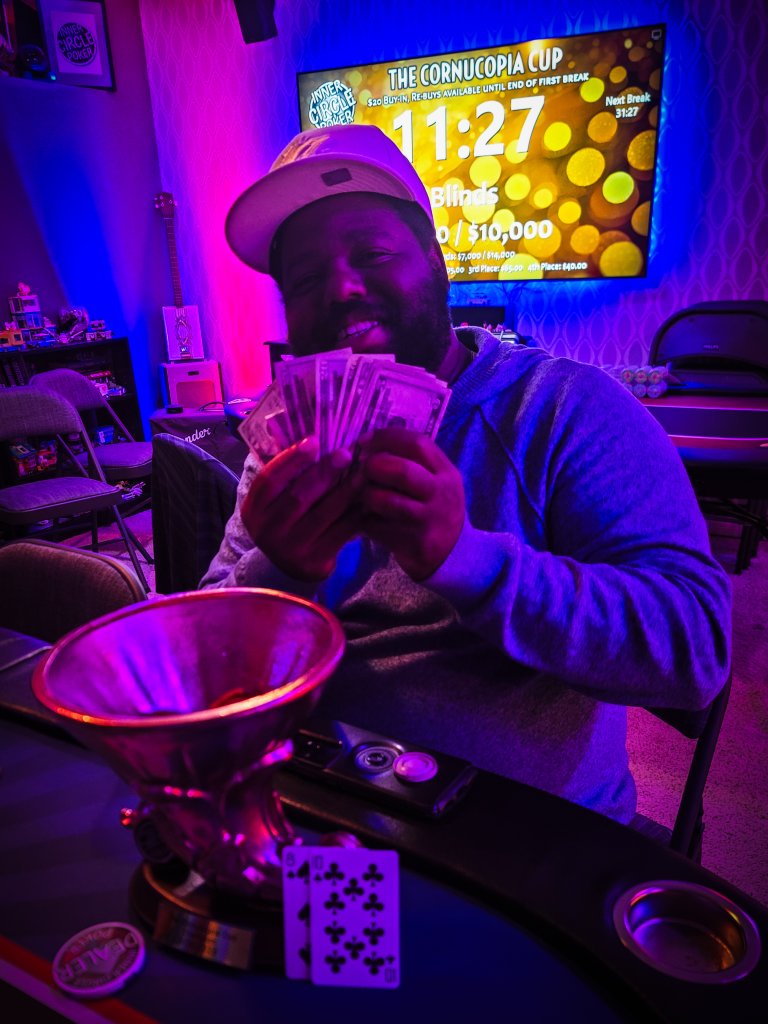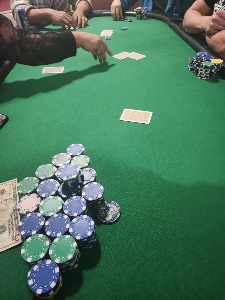 Invited to a friendly game by my brother in law. $1/2$ Don't judge the homies setup. At least they pitched Copags. They will learn more when they come to my house for a tourney next month. My run good ran good. In for $60, out for $240.