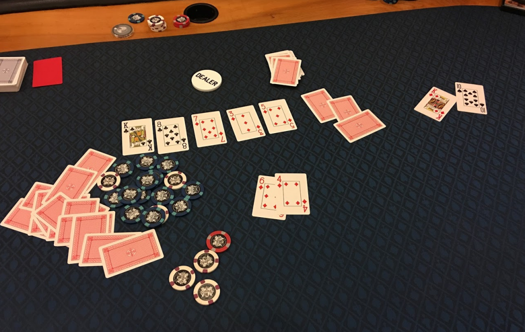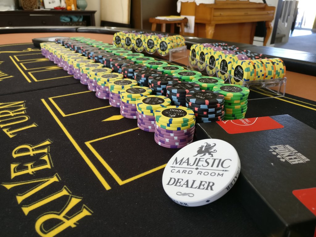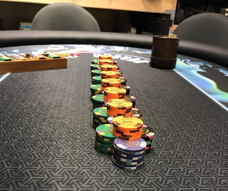 Chances are very good that I put spare chip racks behind your chair. If you win all the chips at your table, it will be so easy to carry them all. The player in seat 7 has no racks near them. Take them out first.