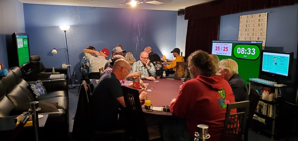 With 19, we started at 3 tables; as a freeze-out, we went down to 2 once we lost our first player.
