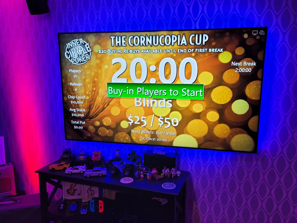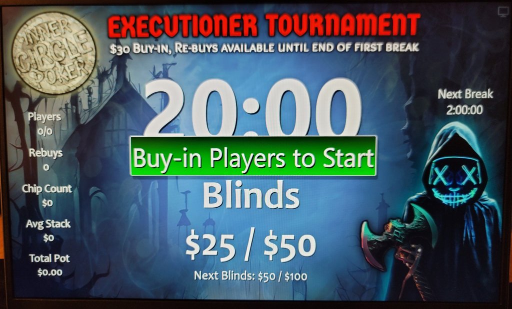 We use Tournament Director. I try to make cool graphics for each tournament for our clock. I always hate when casinos use the most boring and outdated looking software for their TD screen. I have found an easier way to make things look cool without having to edit code in TD.