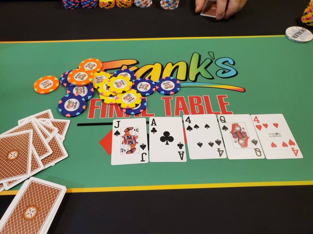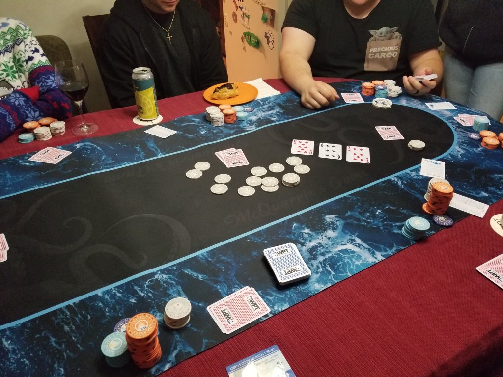 Nice table, nice cards, nice chips and good company. Lots of fun. I ended up taking it down too.