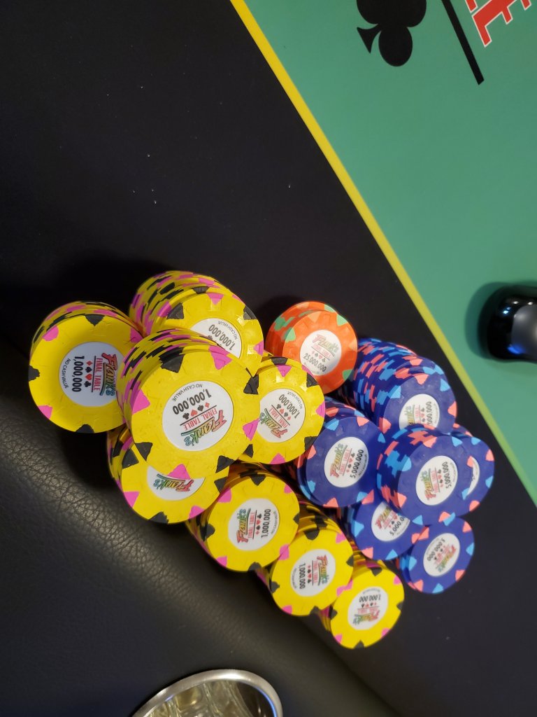 I once had a dream about hosting a "Frank's Series of Poker" lineup of poker tournaments in a casino-like basement with 5 or so tables. This was a tad smaller than that but was it ever satisfying: