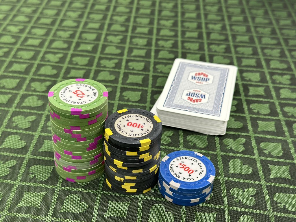 Starlite TRKs in play last night for a small little quick tourney at work with 2023 WSOP Jumbo faced cards. Got 3rd place in this one and won $8, letss go!