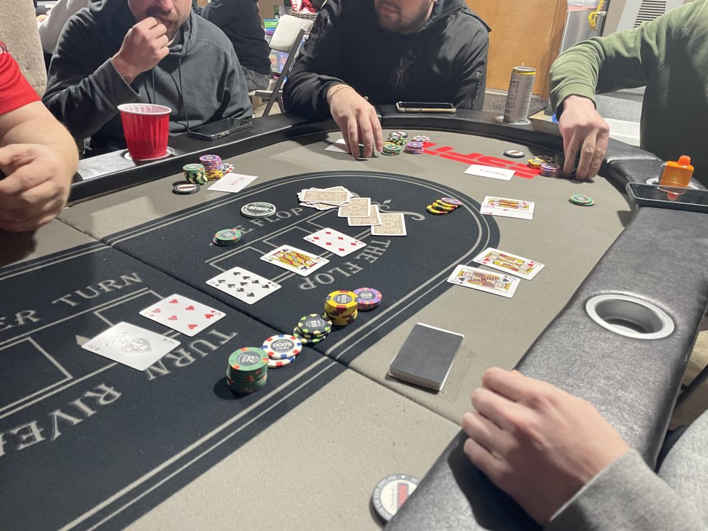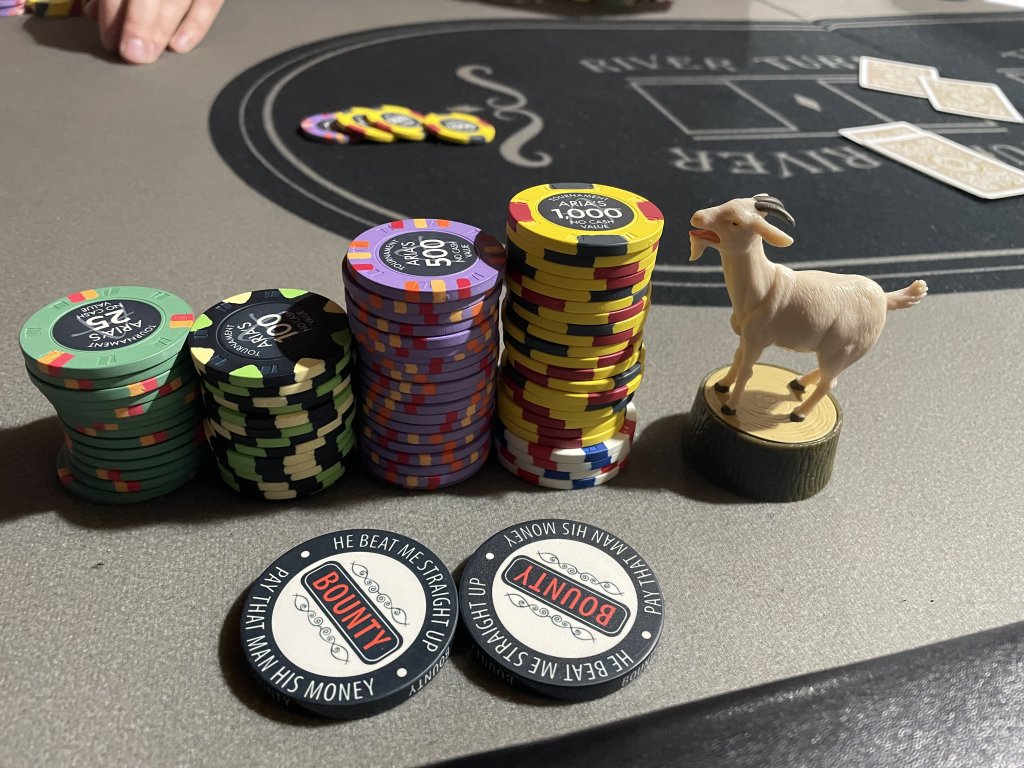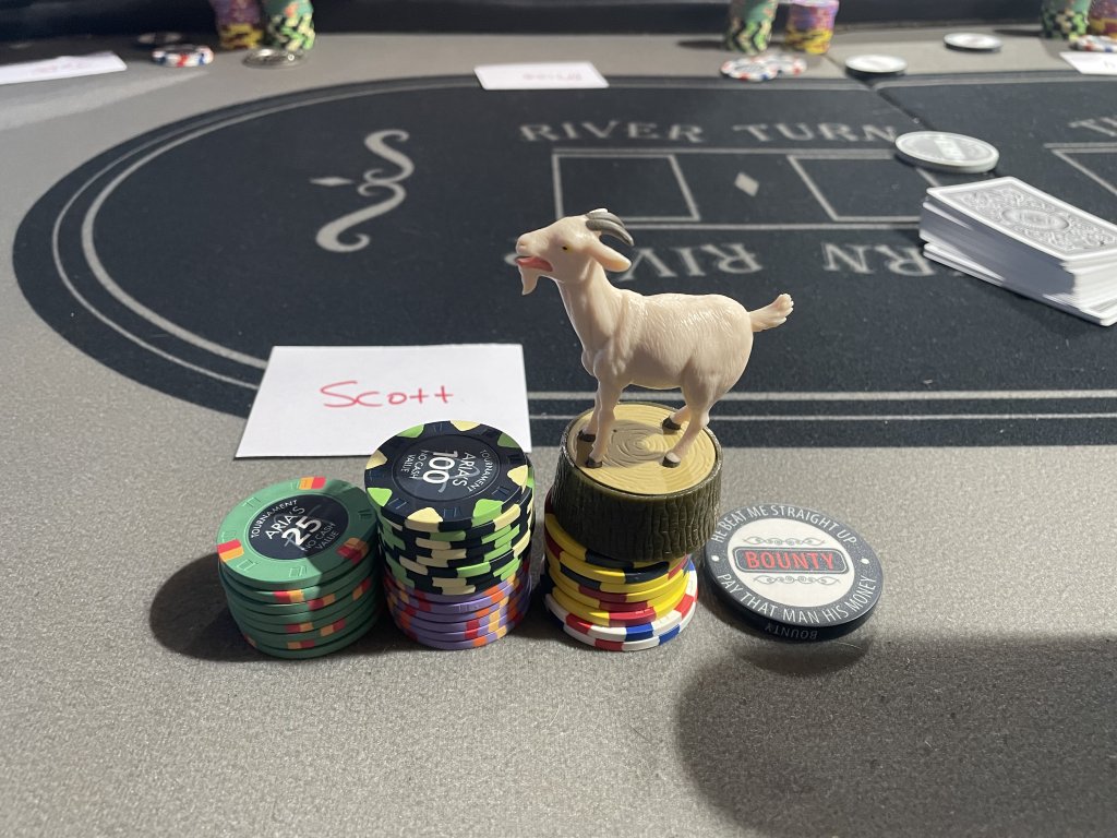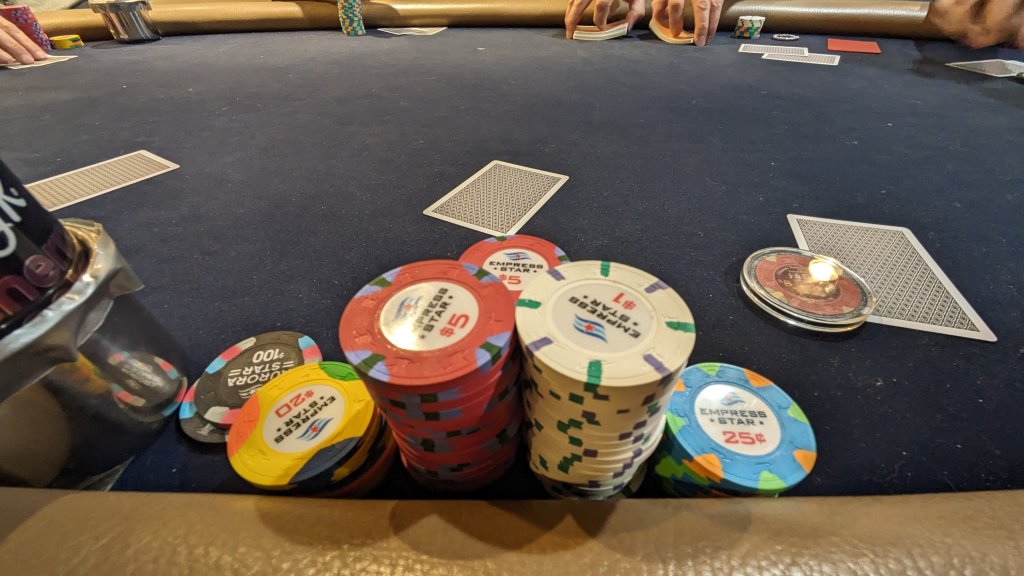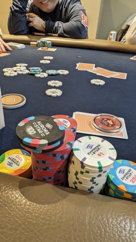 Last hand of the night was a $4 straddle (in a 5c/10c game lol) that led to a 3-way all-in. Always nice to see a 400bb pot. Maybe now that the weather's getting nicer I'll get around to changing the cup holders and adding some speedcloth to the table...