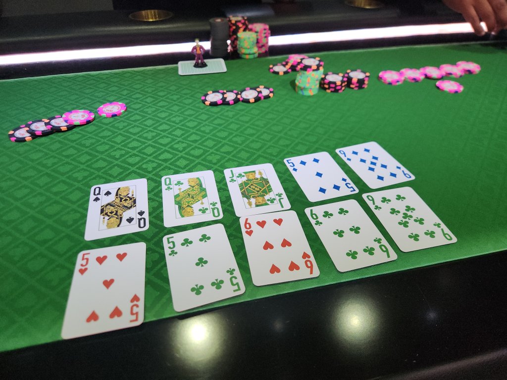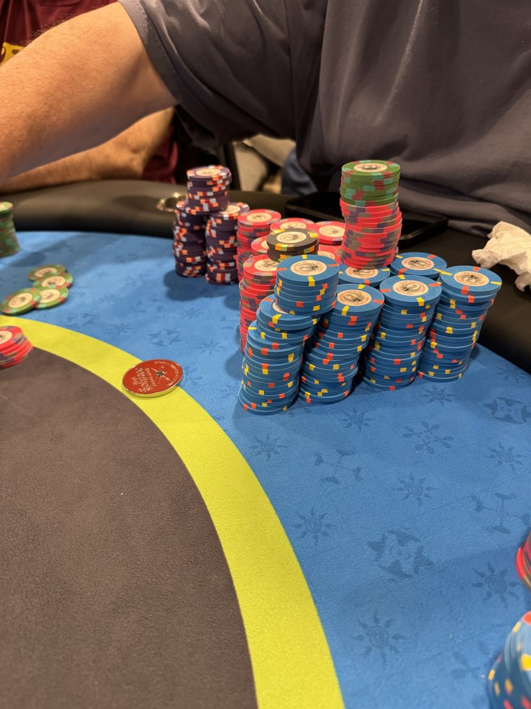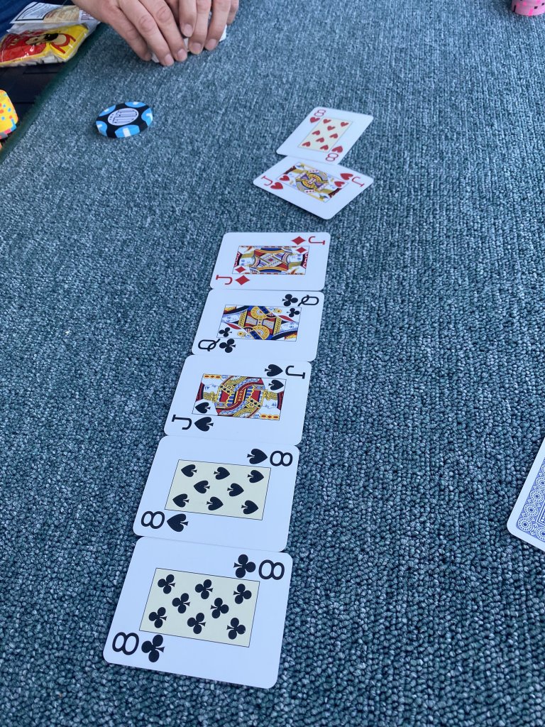 Hero lost most of his original $200 buy in early on when he ran three jacks into fours full. (The above picture was taken mid-way through the evening.)