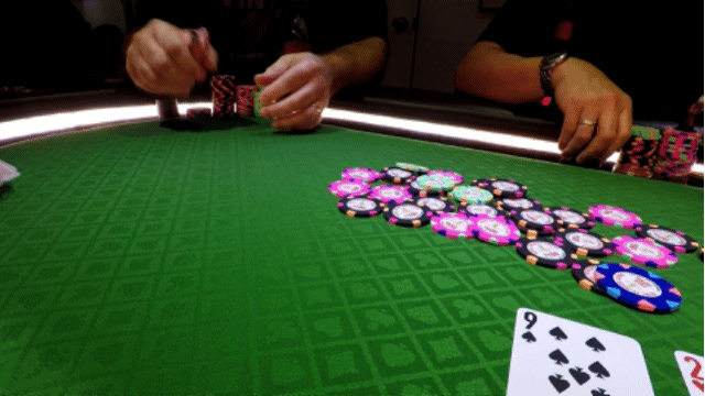 Hero, seeing Hal taking an inventory as he is stacking his chips, proceeds to count out his chips. It becomes obvious rather quickly the disparity between Hero's stack and Hal's.