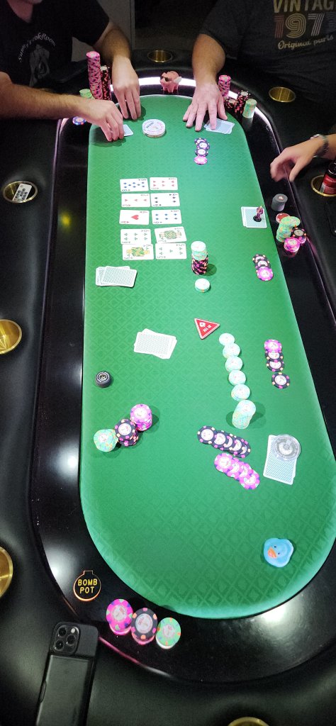 Card dead all night but I did manage to scoop.an All-In Double-Board Bomb Pot. Hand of the night had to be @Dread_Pirate_Roberts Pocket AA which turned into Quad Aces only to see his board get DERAILED!!!