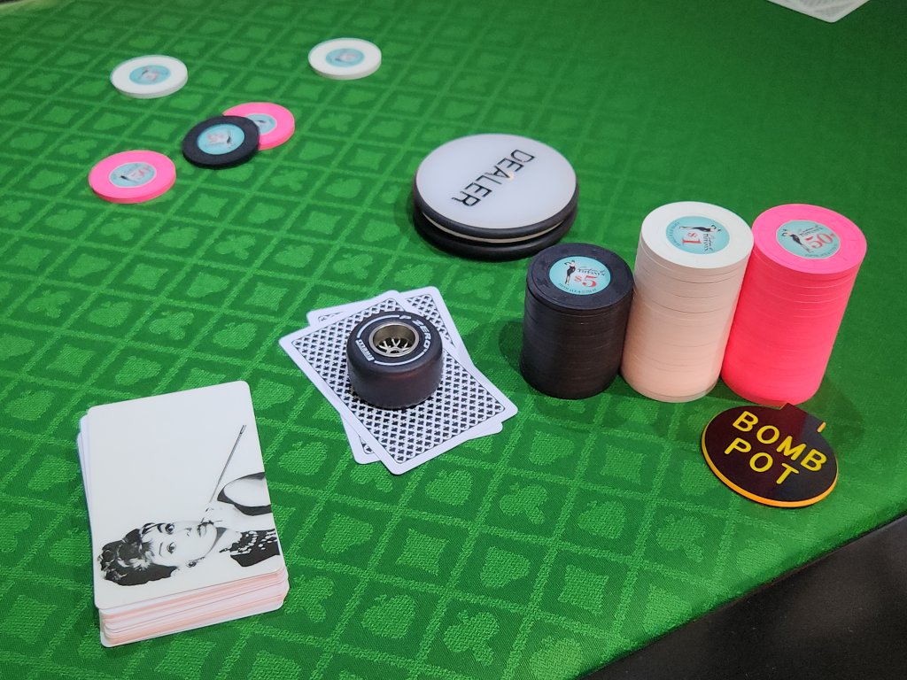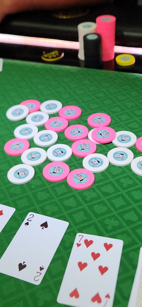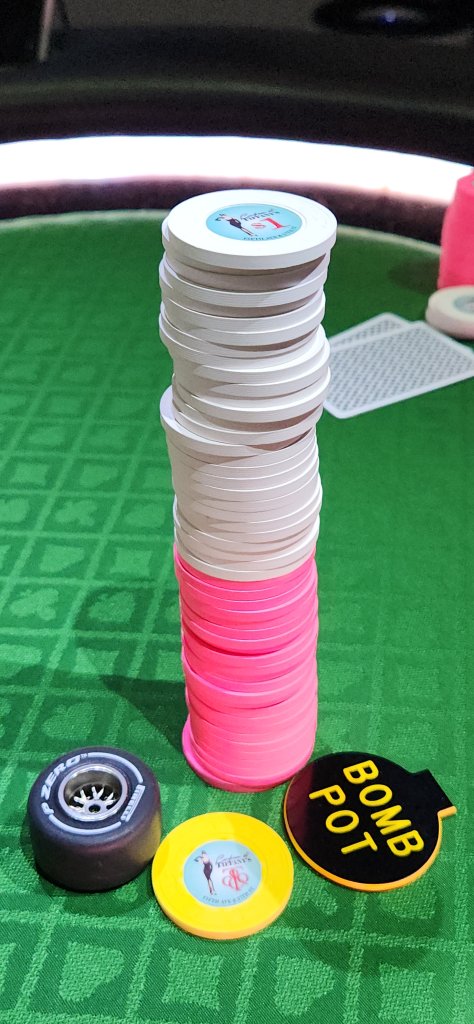 Realized it’s been a while since I shared some NYC home game pics! Threw together a last minute 20c/50c NLH game the other night on my new Gutshot Gaming poker table (made by Triton - fantastic folding table!). Just happy to have people come hang and get the chip sets in use ^_^ We threw in a couple DBPLO pots to spice things up :D