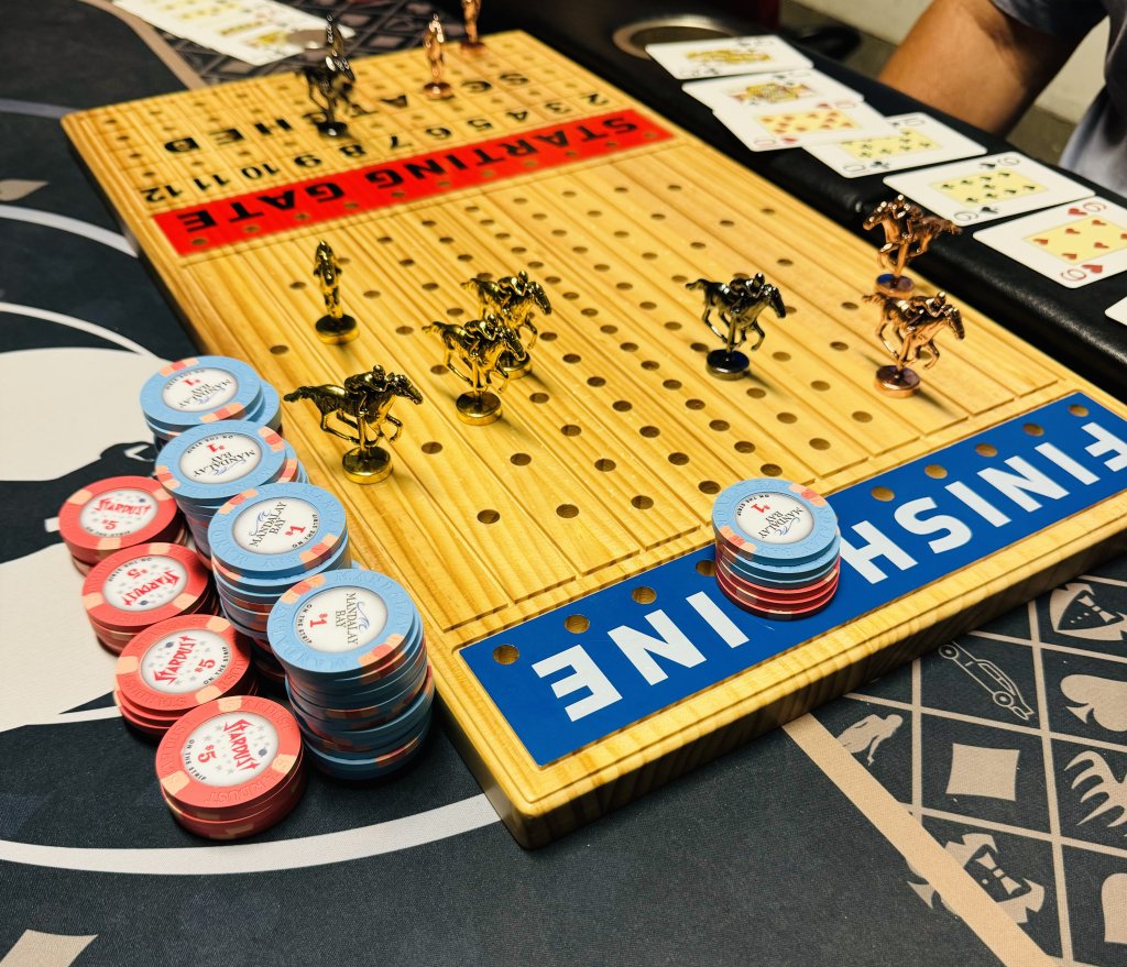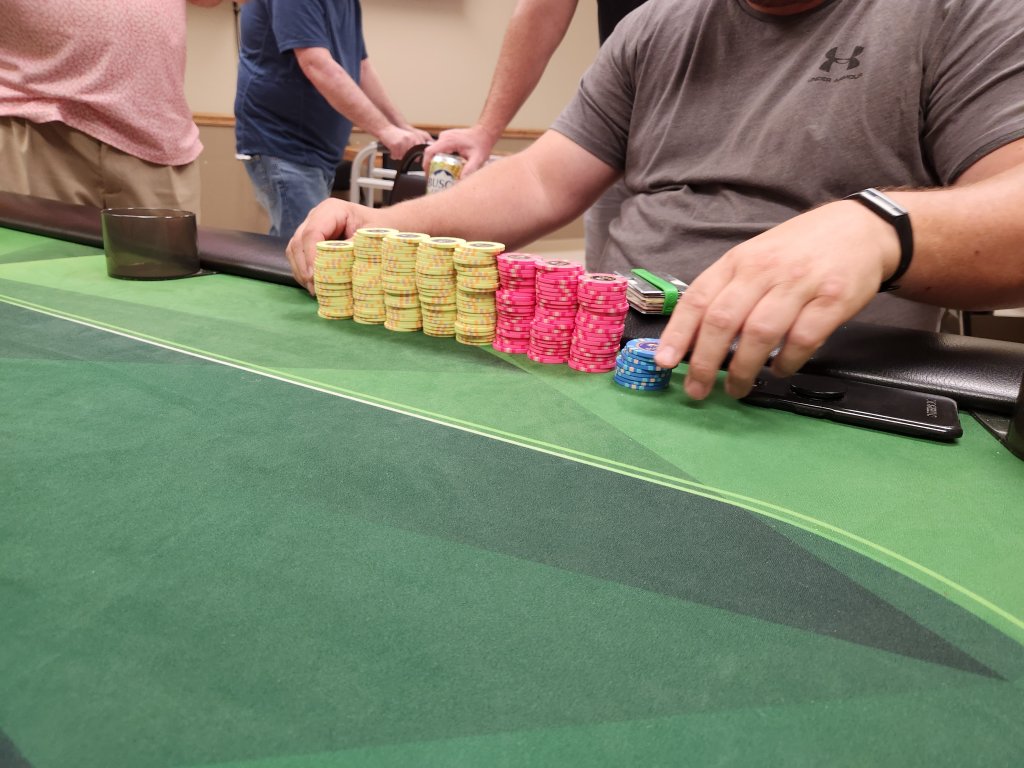 A tournament set, which, in the present absence of tournaments, was played for cash, with the denominations representing cents.
