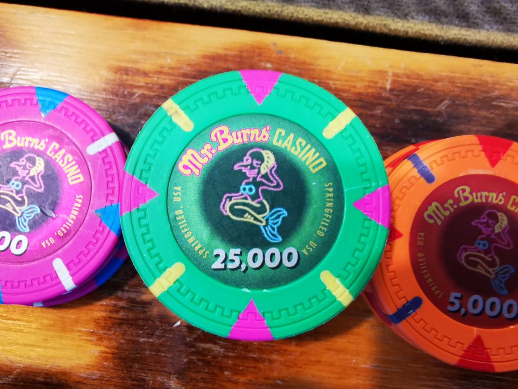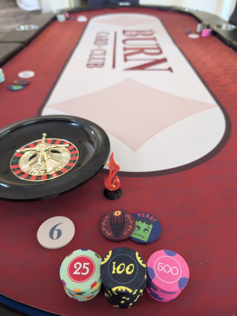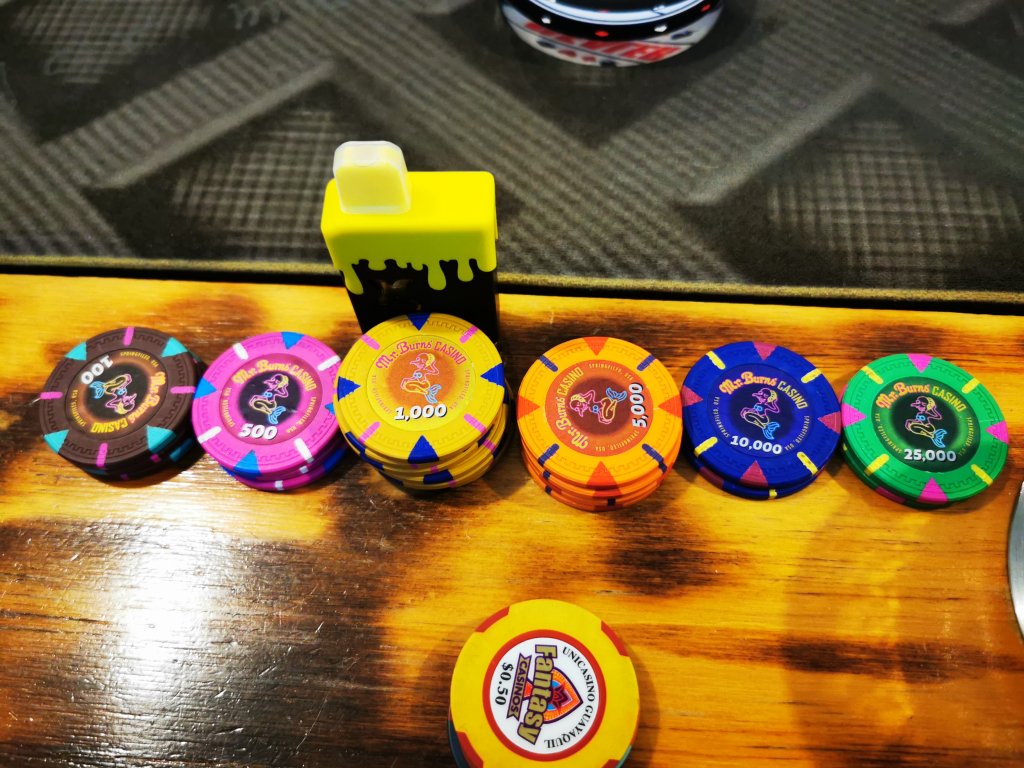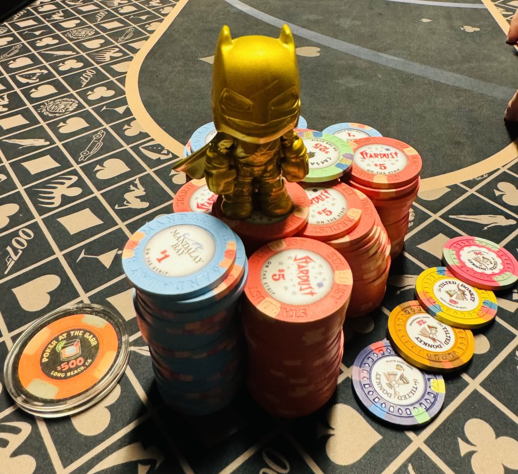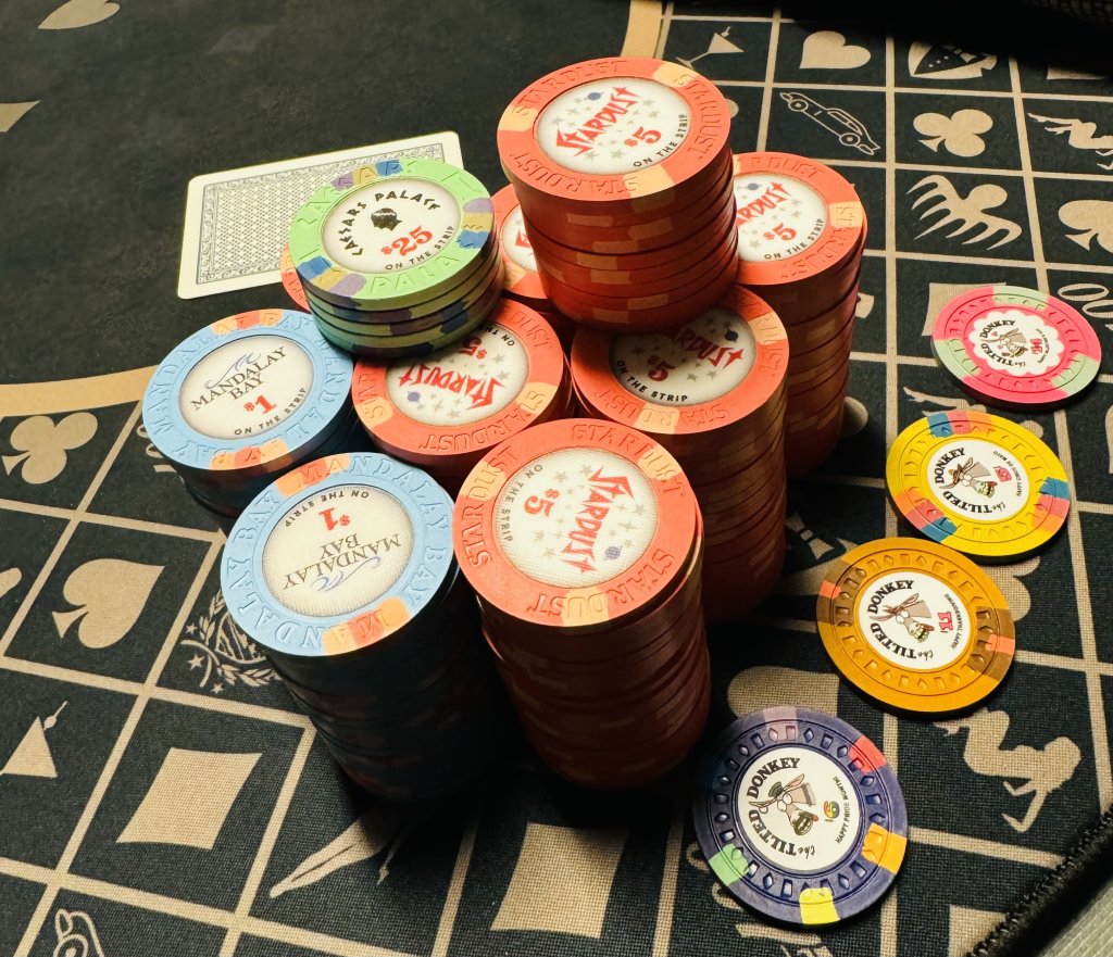 I started out strong and was up over $300 early on.. I was dominating my table, and then just ran into cooler after cooler from a couple maniac players…, After 4 buyins, I clawed my way back to be only down $120.. I’ll take it. I also really dig these chips.