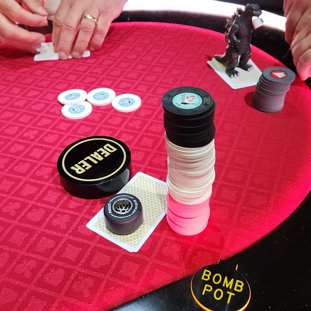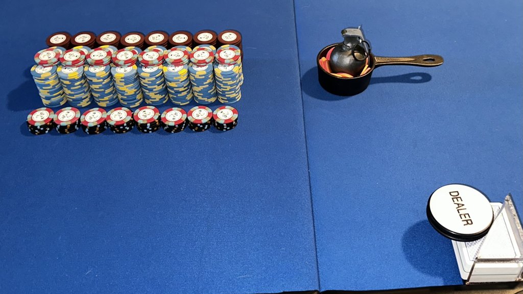 Oh I almost forgot: THANKS Mike for the big & heavy dealer button that matches my custom set!!