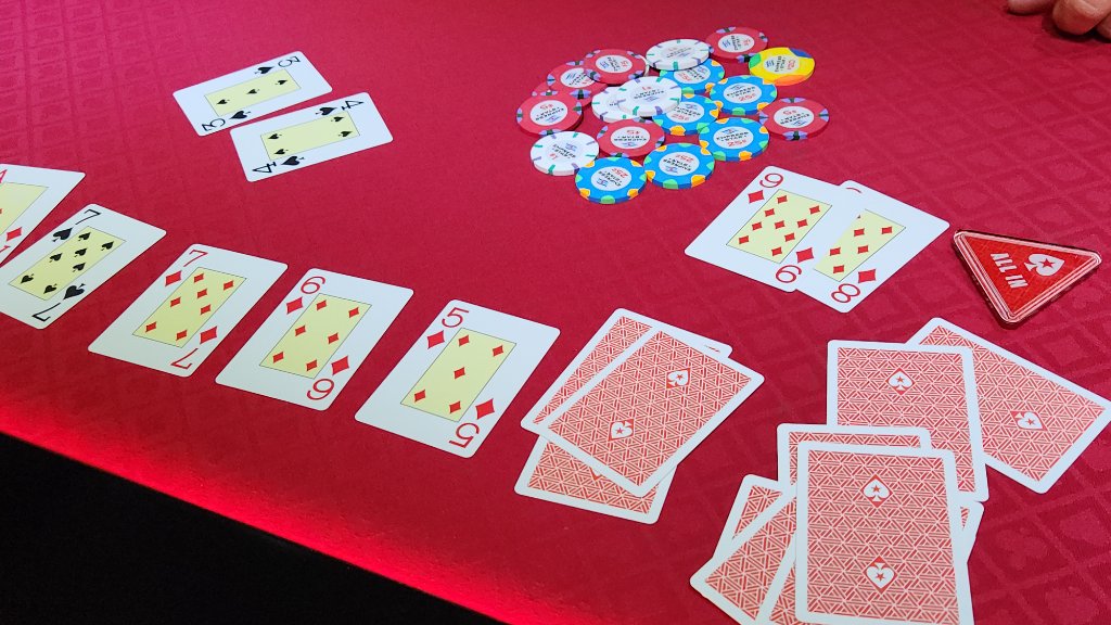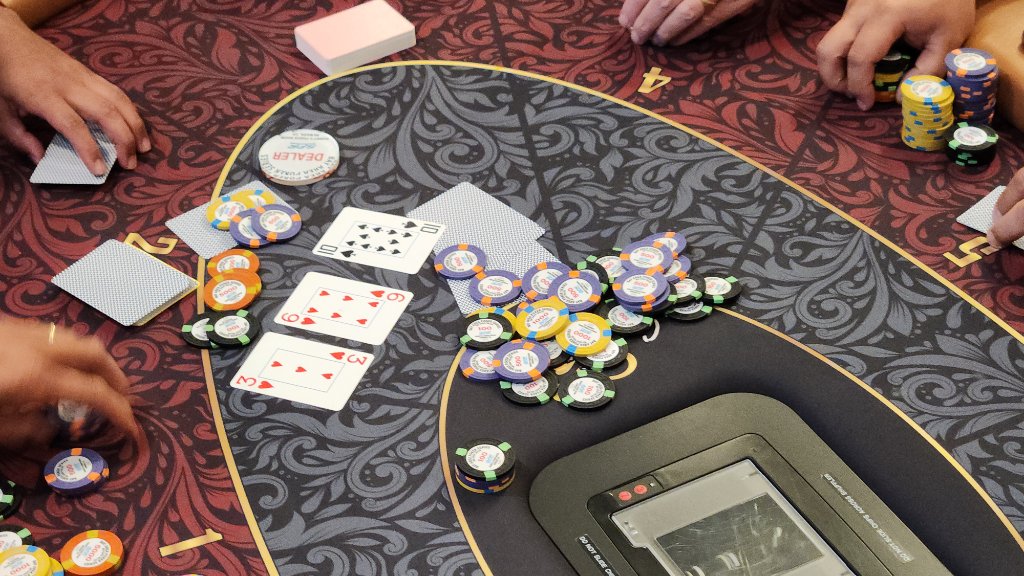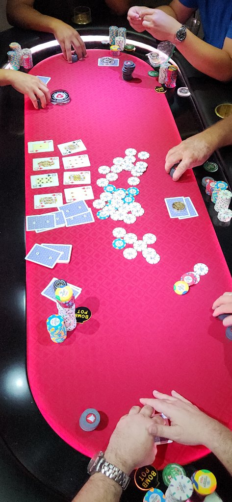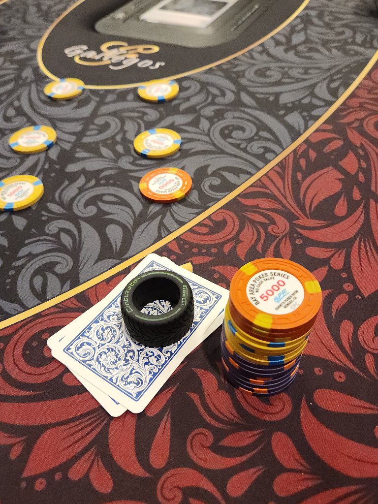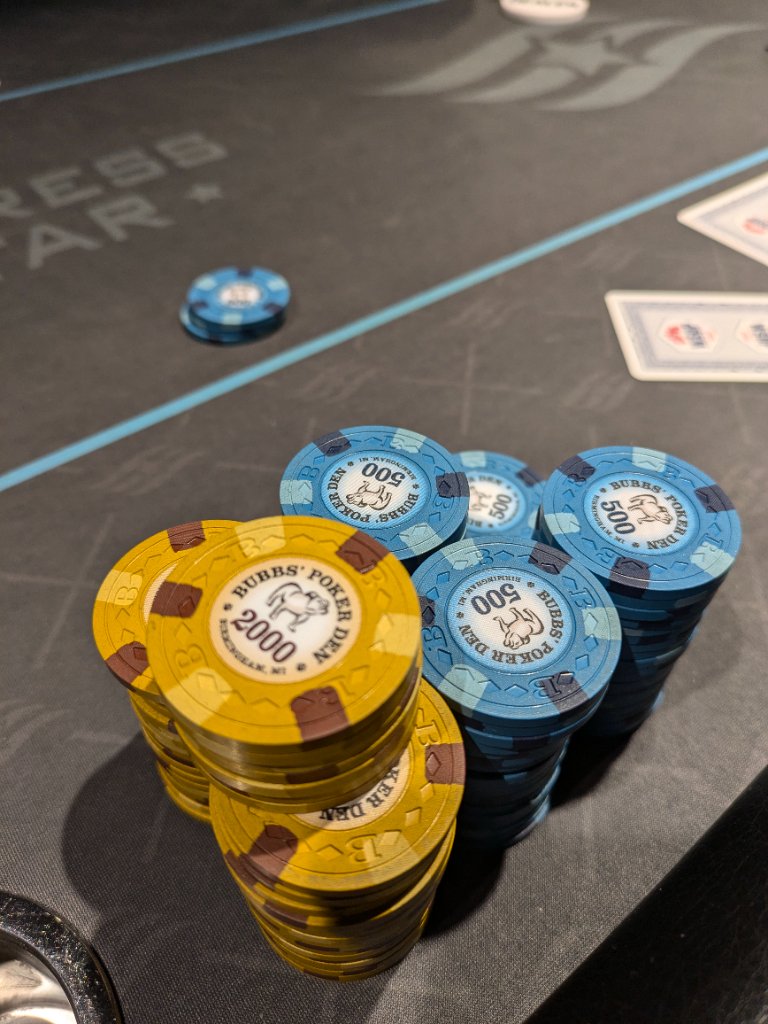 Used KEMs, insane I know! One player loved the texture but 3 others hated how slippery and soft they were, so Ill be back on my FS/Prestige/Kings grind next game. Baby stakes NLHE, still teaching them how to play. Usually let everyone deal but the table was a bit cramped and the fan was on so I just dealt the whole game and had people shuffle.